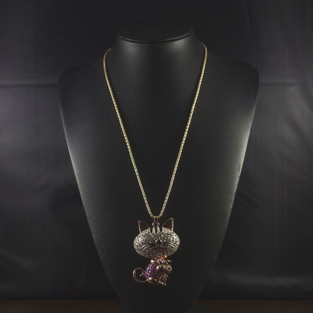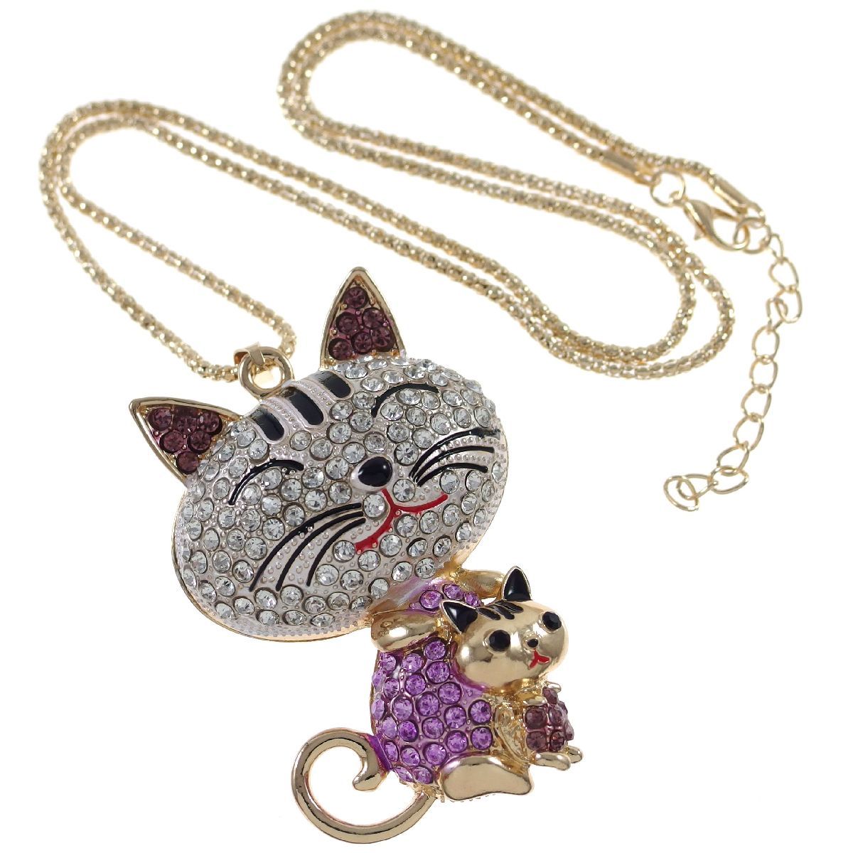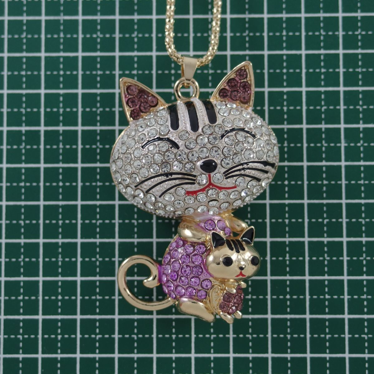 A5727◆ 母ネコと子ネコ * ラインストーン ◆ キャットモチーフ * 猫 ◆ 新品ネックレス ◆ 長さ59㎝ ◆