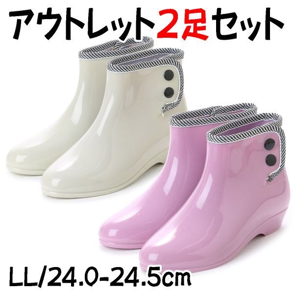 2足セット アウトレット ショートレインブーツ LLサイズ(24.0-24.5cm) ベージュ ピンク レインシューズ 雨靴 長靴 15031 09601 ②