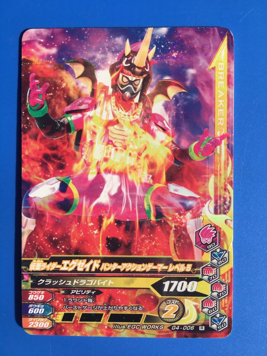 仮面ライダー、ガンバライジング・第G4弾からNo.006《仮面ライダーエグゼイド・ハンターアクションゲーマーレベル5》の登場です。発送は、普通郵便を利用します。(特にご希望のない場合)おとりまとめも可能ですが、送料に変動する場合がございます。また、送料のご請求は、自宅での計量を基準にご請求させていただいておりますので、実際の金額と差異が出る場合もございます。予めご了承ください。他にも多数出品中です。まとめてこの機会にいかがでしょうか?ご質問お待ちしております。