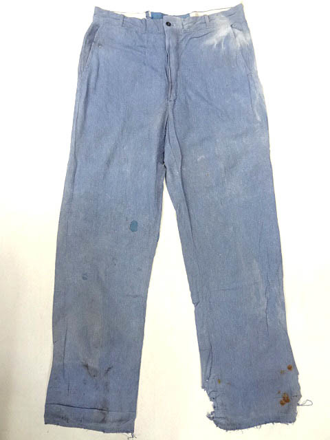 アイテム詳細:ヴィンテージ淡ブルーシャンブレーワークパンツ