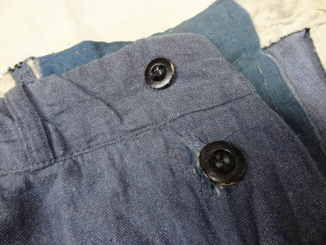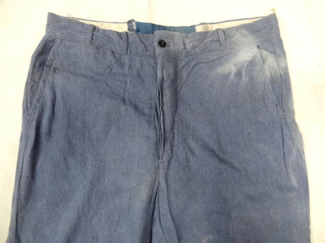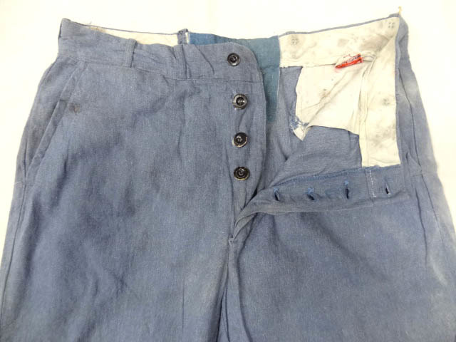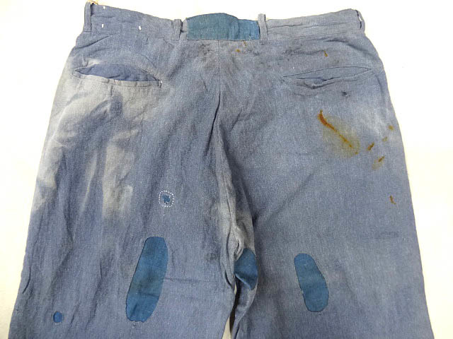 ビンテージ 希少 50S ブルー 青 シャンブレー ワーク パンツ ボロ ダメージ 雰囲気 ナス紺 レア 霜降り 杢 ウッド 木 ボタン リペア 襤褸