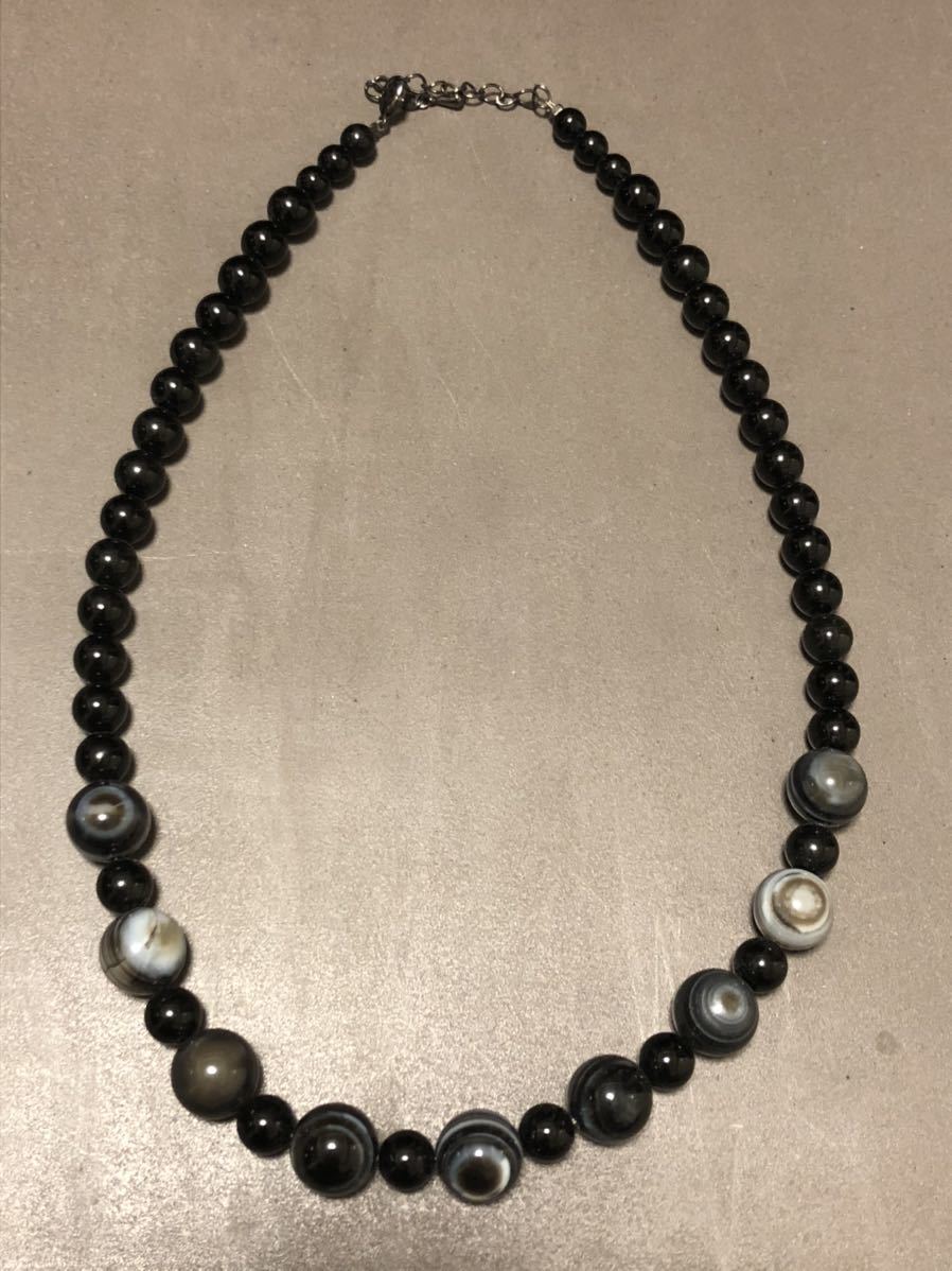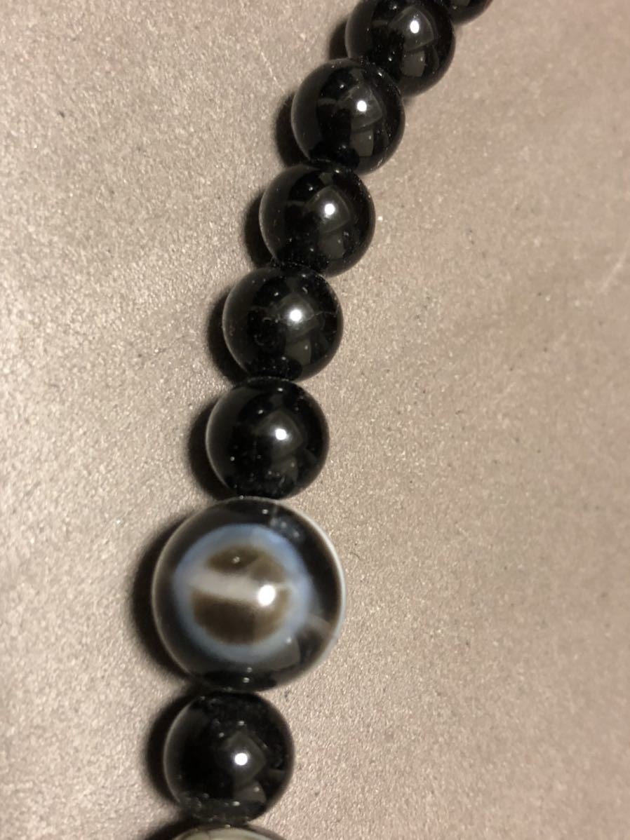 オニキス(直径0.8cm・0.6cm)と天眼石(直径1.2cm)で出来ています。