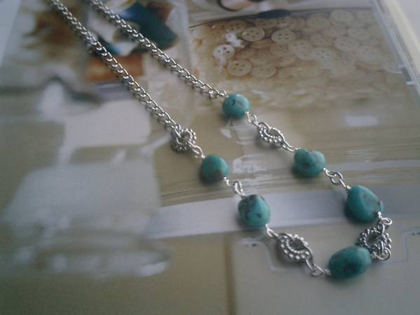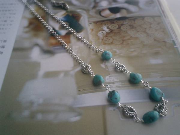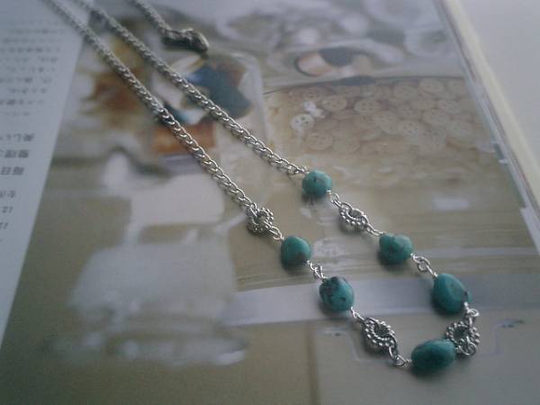 巴里の裏通りの小さなお店・・シリーズです♪秋のターコイズ・・シックなターコイズのネックレスです♪キュートなメタルチャームを合わせてニューヨークモダンな表情です♪ターコイズは8ミリから10ミリ位のラフカットです♪長さは全長60センチ位で調節自由です♪チョーカー風に着けられても素敵です♪同じデザインの石の大きさ違い、長さ違いのネックレスやお揃いのブレスレットやイヤリングも出品しています♪ハンドメイドをご理解頂いてノークレーム、ノーリターンでお願いします