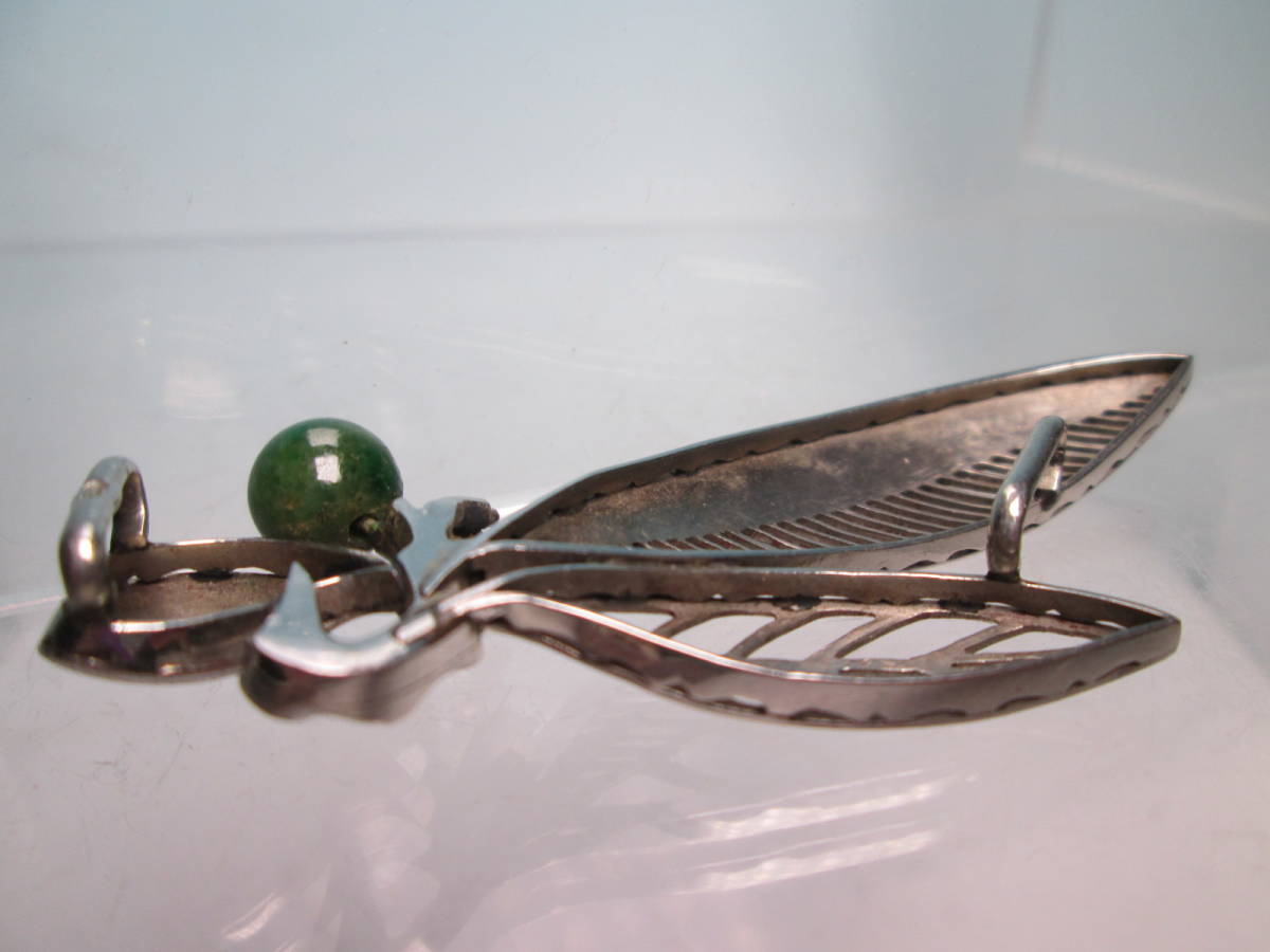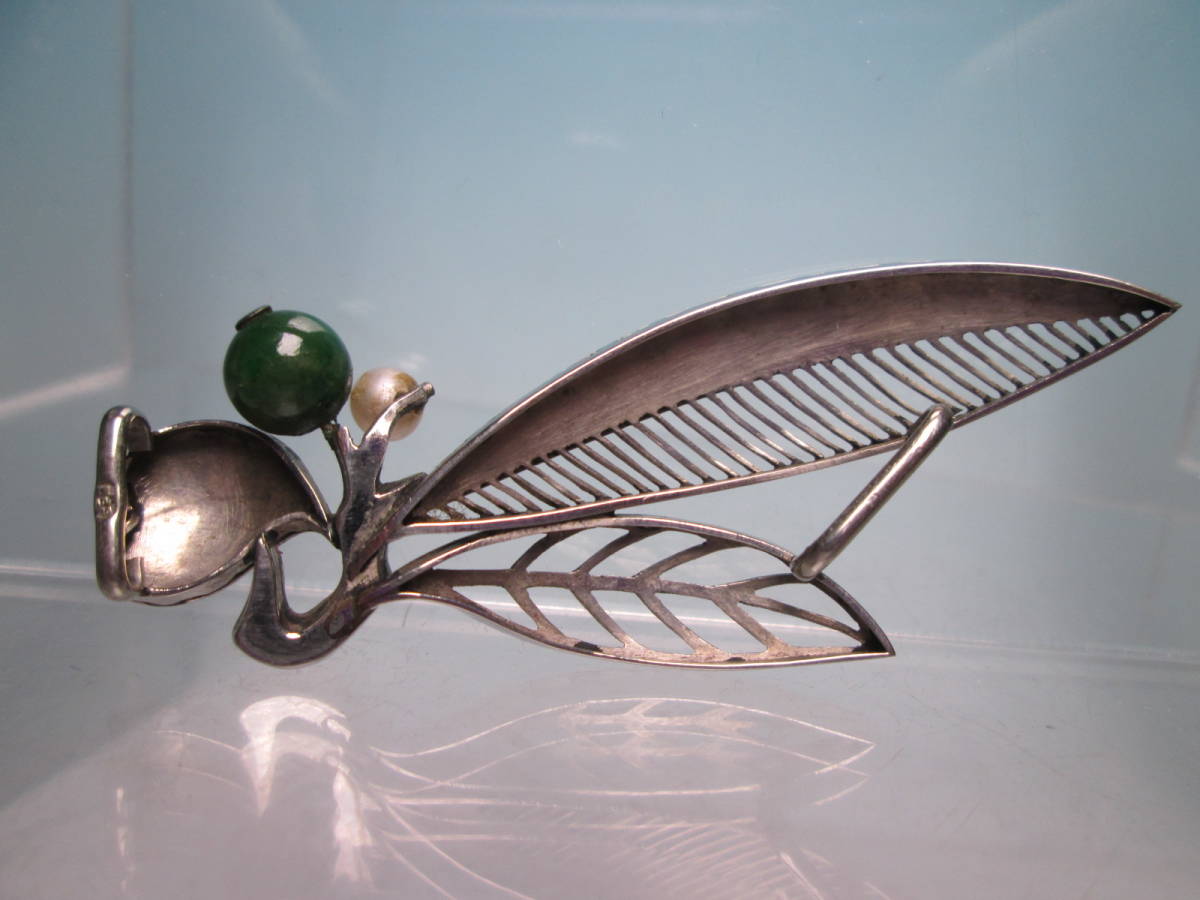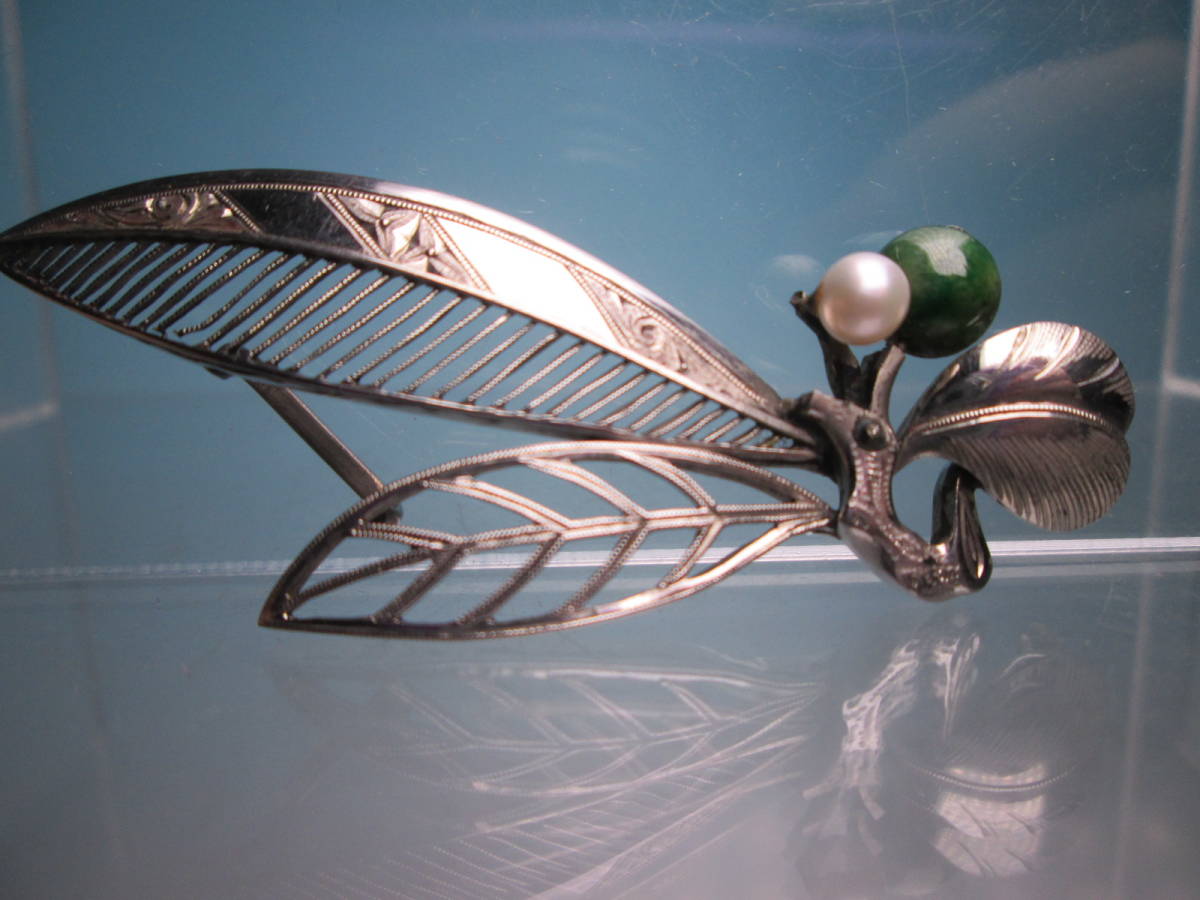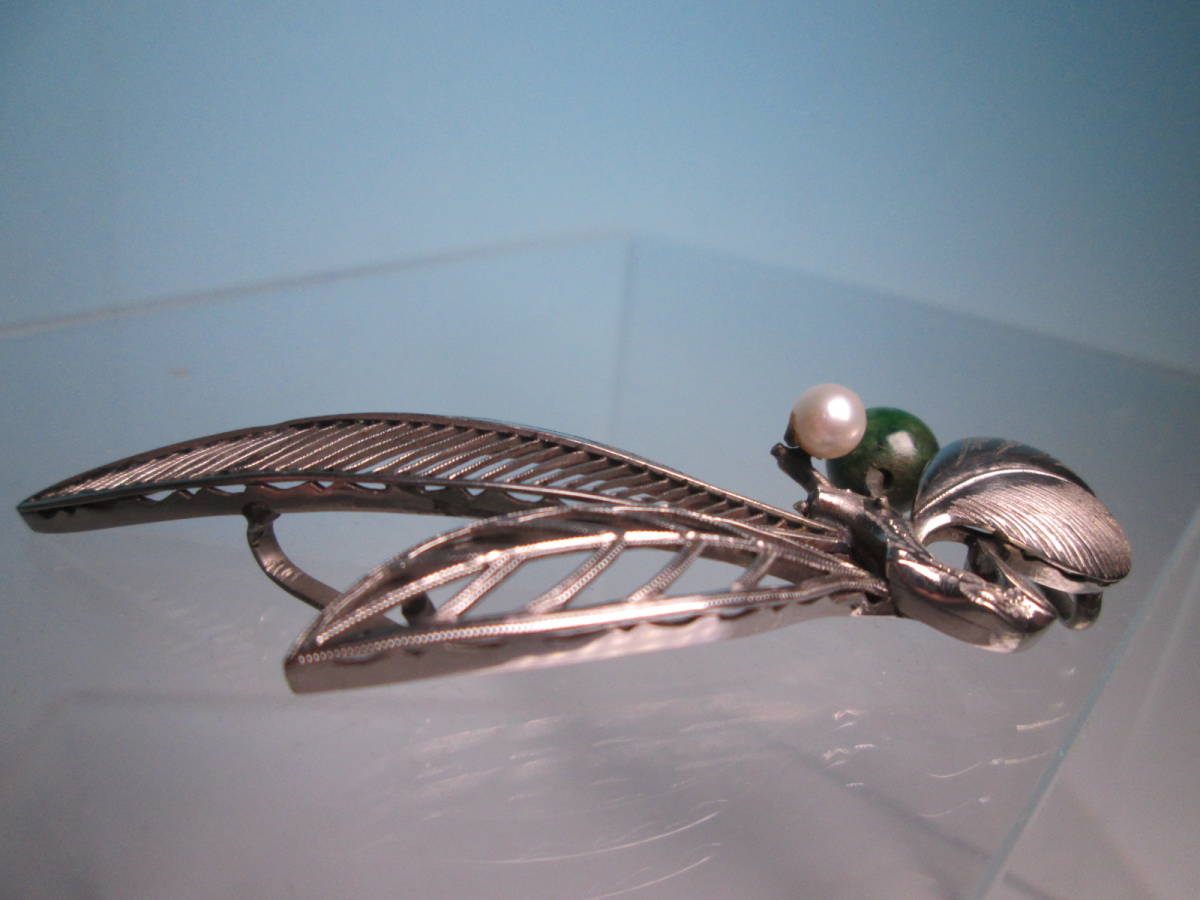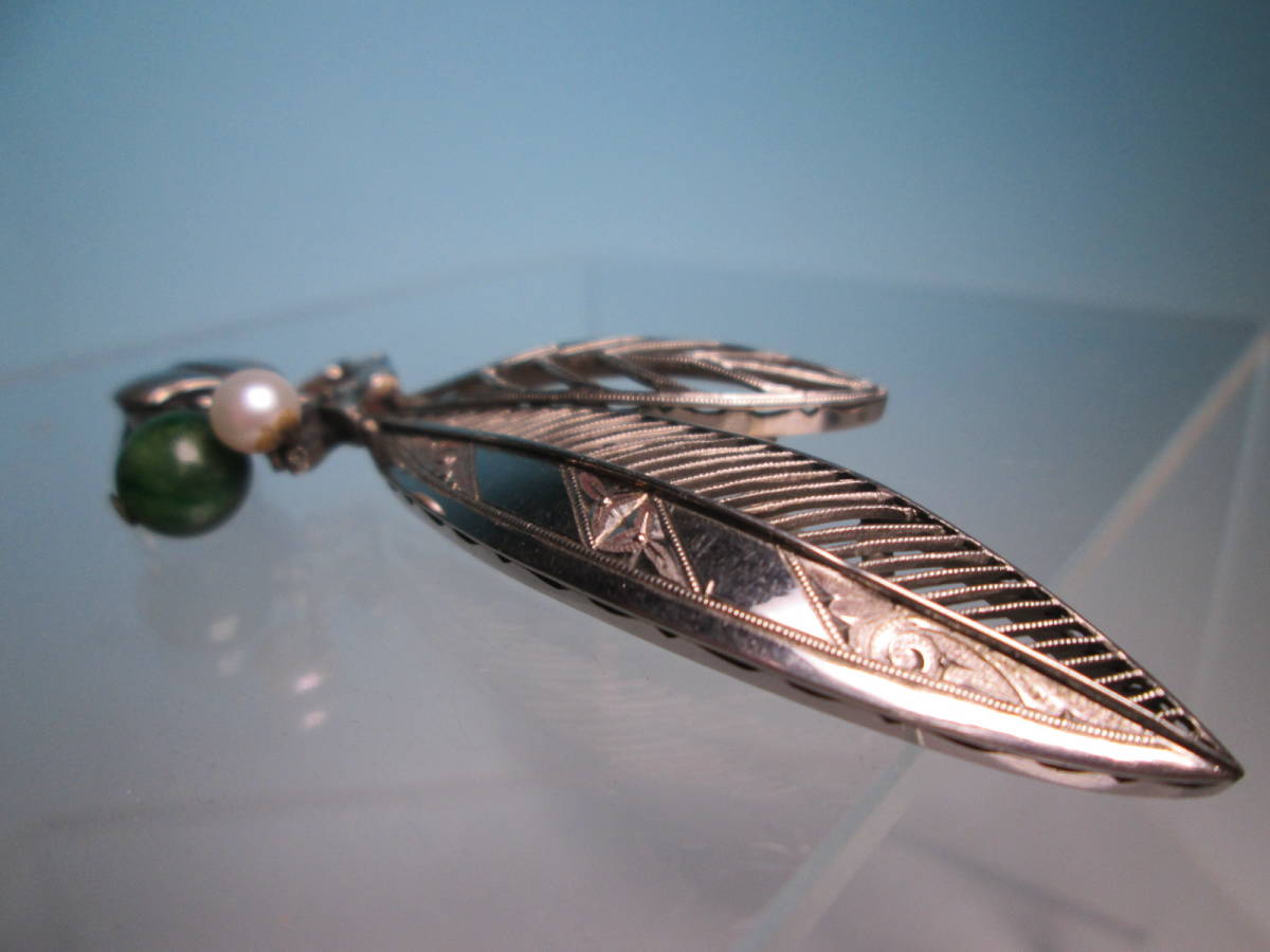 【江月】アンティーク・彫金細工 本翡翠玉&真珠飾り葉と実帯留め 7,79g