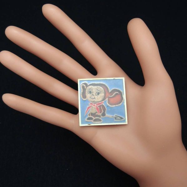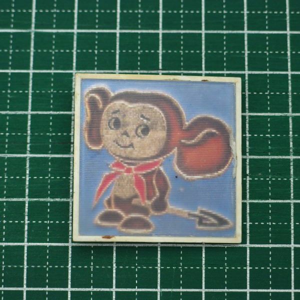 R511◆ シャベルをもって泥んこのチェブ ◆ ゲーナとチェブラーシカ ◆ ソ連 * ピンバッジ ◆ ロシア * ヴィンテージ ◆