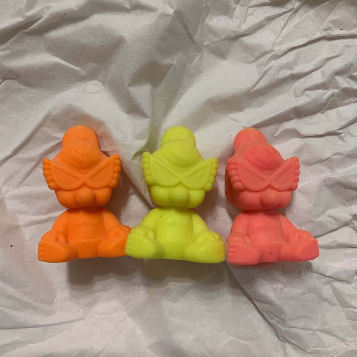 こちらの消しゴムは未使用品ですが、飾り棚に飾ってあった物となり弱冠の変色が見られます。
