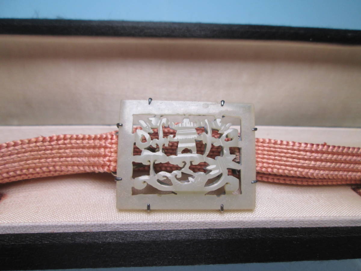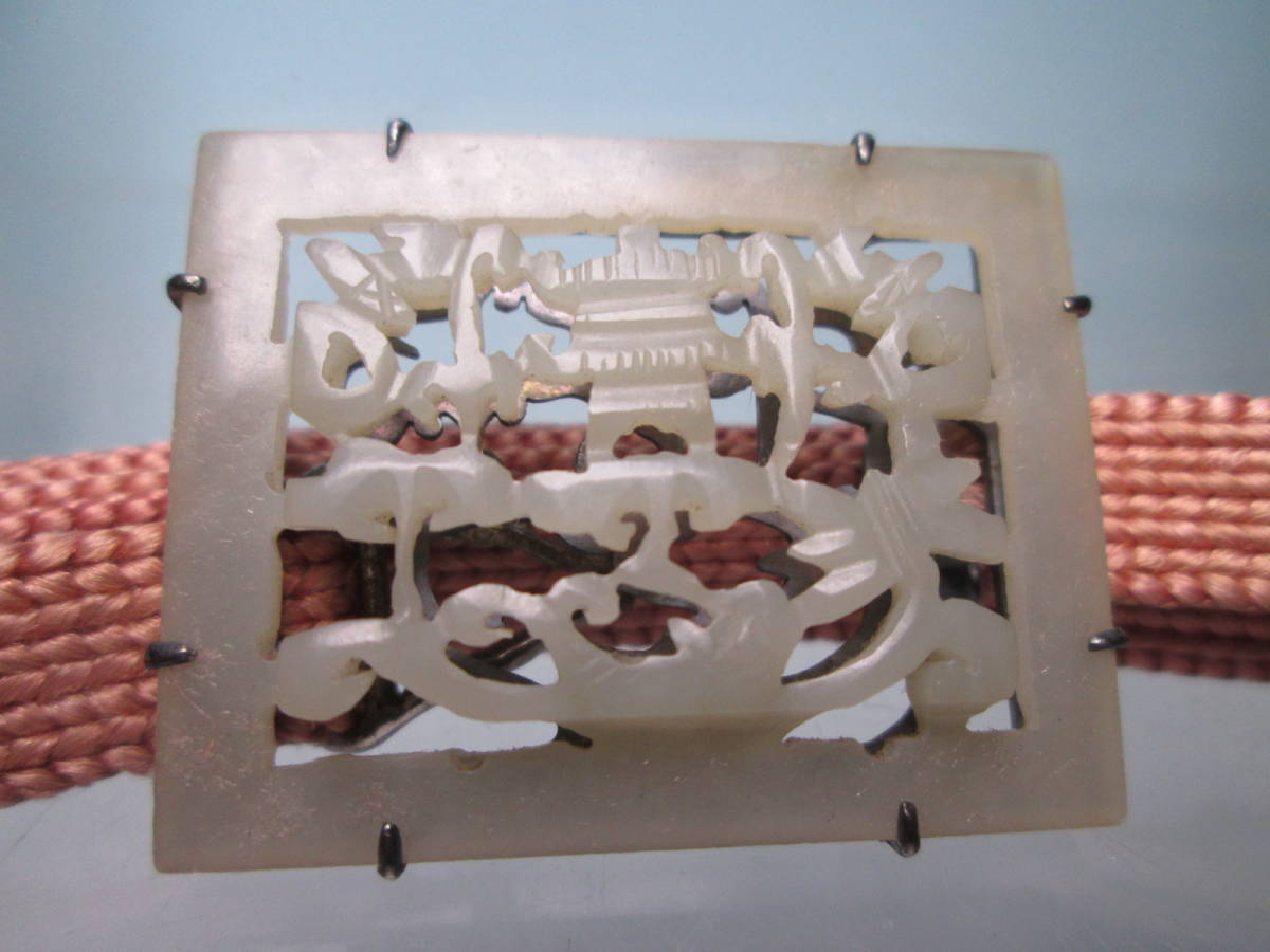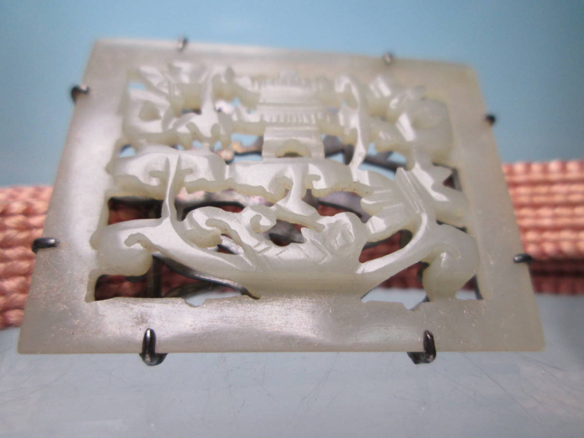 【江月】アンティーク・銀製 白砡楼閣透かし彫刻の帯留め 8,3g ケース付