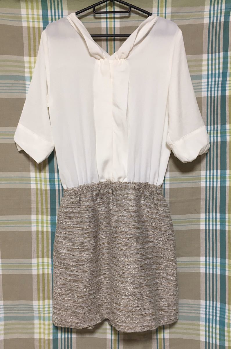☆URBAN RESEARCH アーバンリサーチ☆5分丈ワンピース ホワイト/ベージュ ONEサイズ USED