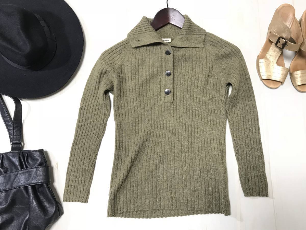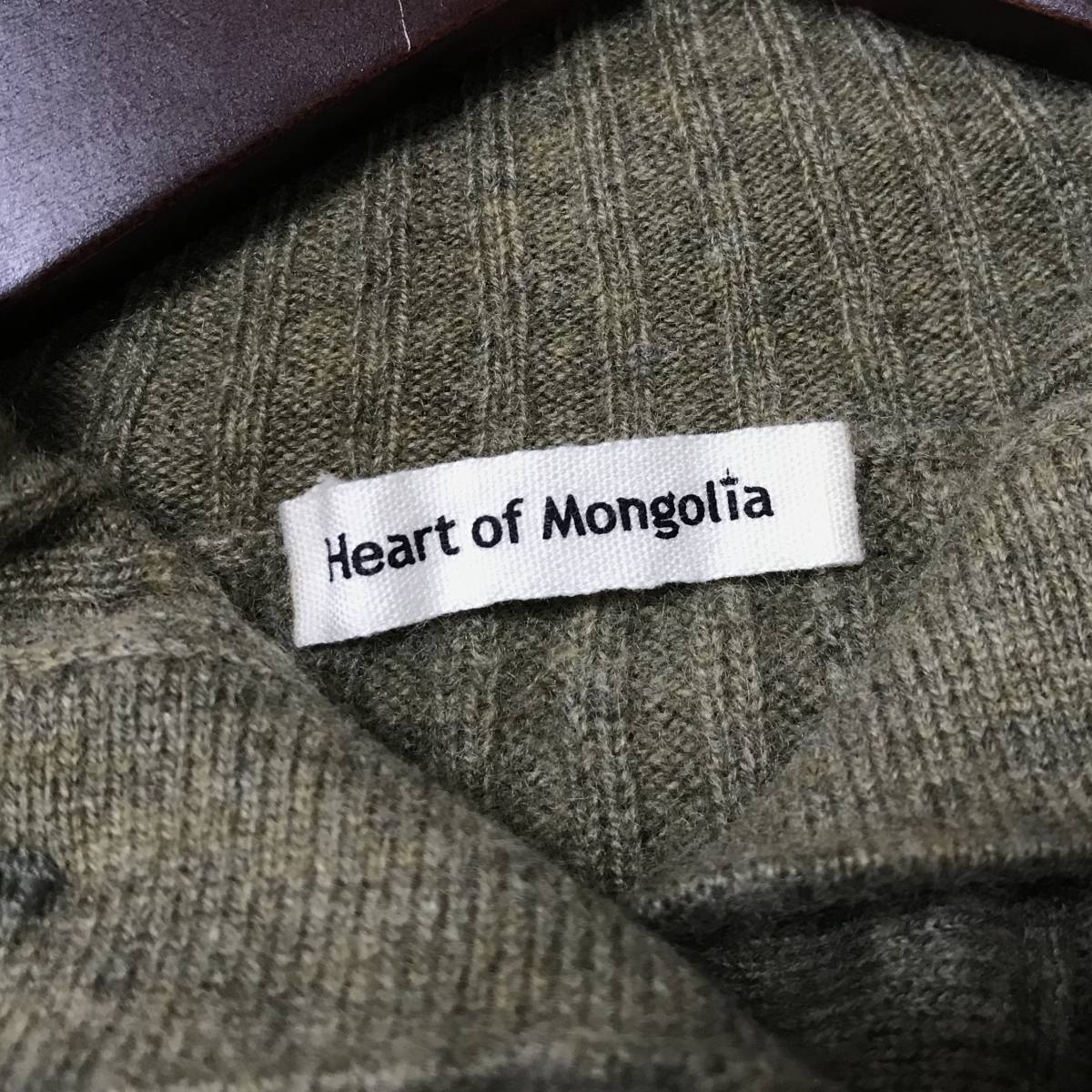 ★HEART OF MONGOLIA★手触り抜群★素敵なカシミアニットセーター★ハイネック★sizeS★カーキ★ |