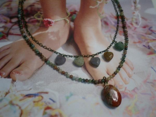 いろんなお色が可愛いインディアン・アゲートのネックレスです♪お揃いで着けていただきたいので3本セットです♪シックなお色が楽しいインディアン・アゲートの3ミリの丸玉はトップにレッド・ジャスパーを合わせてアンティークで楽しい雰囲気です♪トップのジャスパーは20×15ミリ位で模様が入って個性的です♪長さは37センチ+アジャスター14センチで最長51センチ位です♪可愛いハートの10ミリのインディアン・アゲートは35センチ+アジャスター14センチで最長49センチです。シンプルで可憐な雰囲気です♪繊細な2ミリのインディアン・アゲートの丸玉はトップに12ミリのクロスと合わせました。シックで大人っぽい可愛さです♪長さは35センチ+アジャスター14センチで最長49センチ位です♪♪レッド・ジャスパーとインディアン・アゲートのクロスのトップは取り外しが出来ますのでいろいろな組み合わせで楽しんで頂けます♪シンプルで飽きのこないいつまでも着けられるデザインを考えて作りました!お揃いのブレスレットも出品予定です♪ハンドメイドをご理解頂いてノークレーム、ノーリターンでお願いします