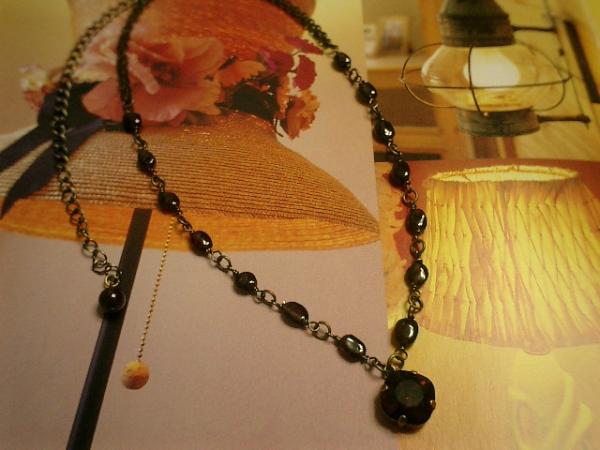 シックなお色のガーネットのネックレスを作りました♪アンティークな雰囲気で作りました♪アガタのお好きな方にも♪ガーネットは6×4ミリ位でトップは12ミリのスワロスキーです♪落ち着いたシックなお色なので合わせやすいと思います♪シンプルで飽きのこないいつまでも着けられるデザインを考えて作りました!長さは36センチ+アジャスター16センチで最長52センチ位です。チョーカー風に着けられても可愛いです♪ハンドメイドをご理解頂いてノークレーム、ノーリターンでお願いします