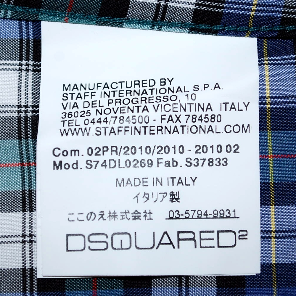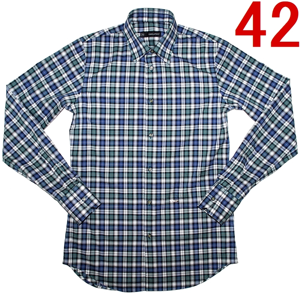 2010-11年・秋冬、ディースクエアードの、チェックシャツです。 着用回数は、1回のみなので、新品同様、大変綺麗な状態です。 サイズは、希少な、メンズ最小サイズの、【42】 (注: レディースの大きいサイズではありません) 10AWは、【(アイス)ホッケー・ホラー・ショー】がテーマ、 ブラック&ホワイトがメインカラーだった、 ランウェイ・コレクションには登場しませんでしたが、 ブルー、グリーン、ホワイト、ブラックに、赤と黄色の線が入った、 大変、綺麗なカラーリングの、チェックシャツです。 年間通して着られる、薄手の素材で、 背中は、プリーツ無しの、シャーリング仕様、 ウエストは、前、後ろ、ダーツ(プリーツ)無しの、ボックスシルエットです。 台襟と、カフスには、硬めの芯が入っています。 ウエスト部に【Dsquared2】の金属プレートが、縫い付けられています。 厚みのある黒蝶貝のボタンは、黄色の糸で縫われていて、 縁に、白い文字で【 DSQUARED2 MADE IN ITALY 】の刻印が、入っています。 購入時、付属していたボックスの状態も、綺麗です。 | |