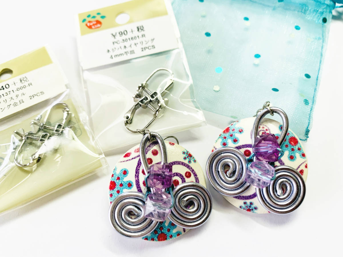 ☆頂きものですが、当方ピアスが出来ない為イヤリング金具を2種購入しイヤリングに変身させようとトライしましたが、