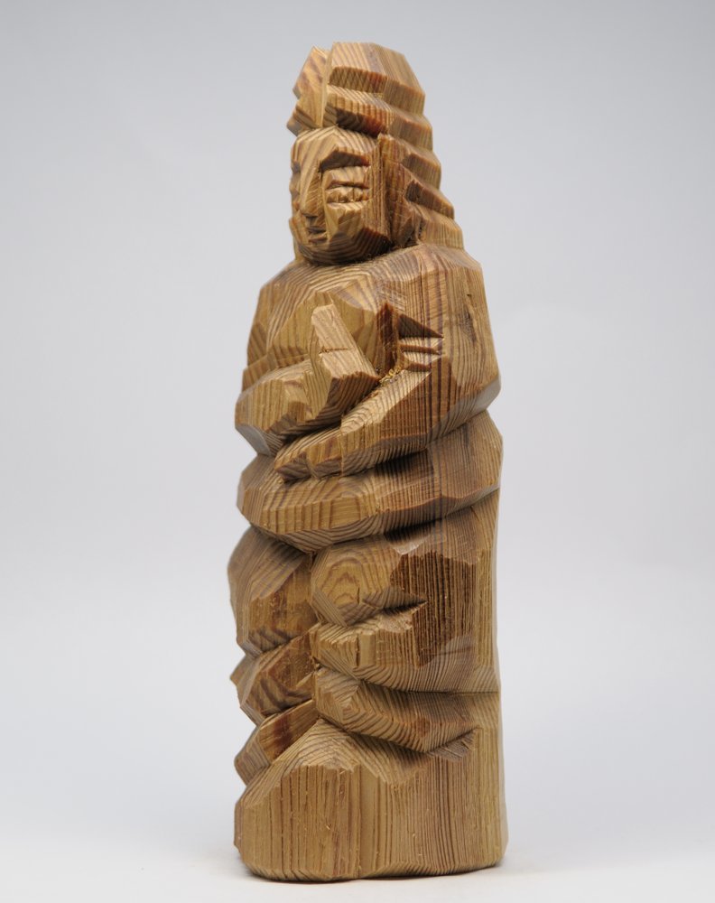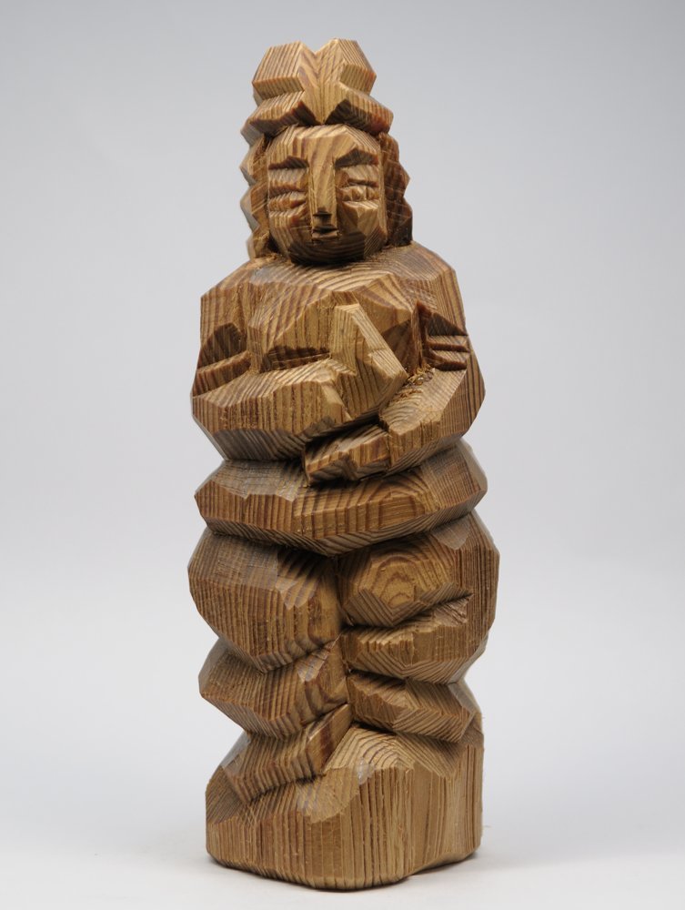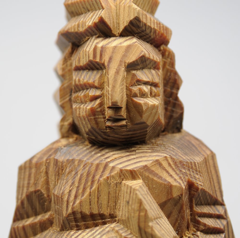 叩き彫 「ツキヨミノミコト」 16220 マツ材 21.5cm 円空 木喰