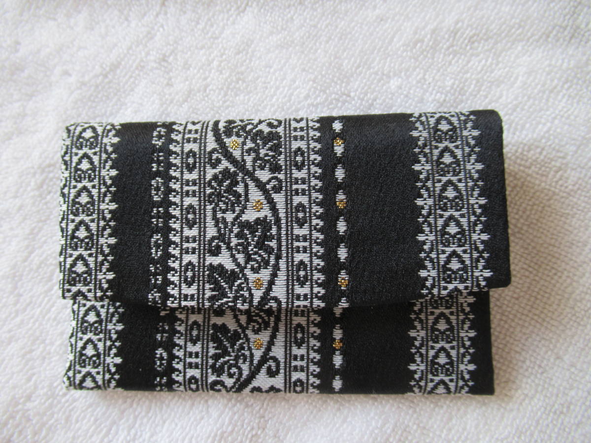 手作り 金襴カードケース 名刺入れ 保険証入れ (黒地縦柄)