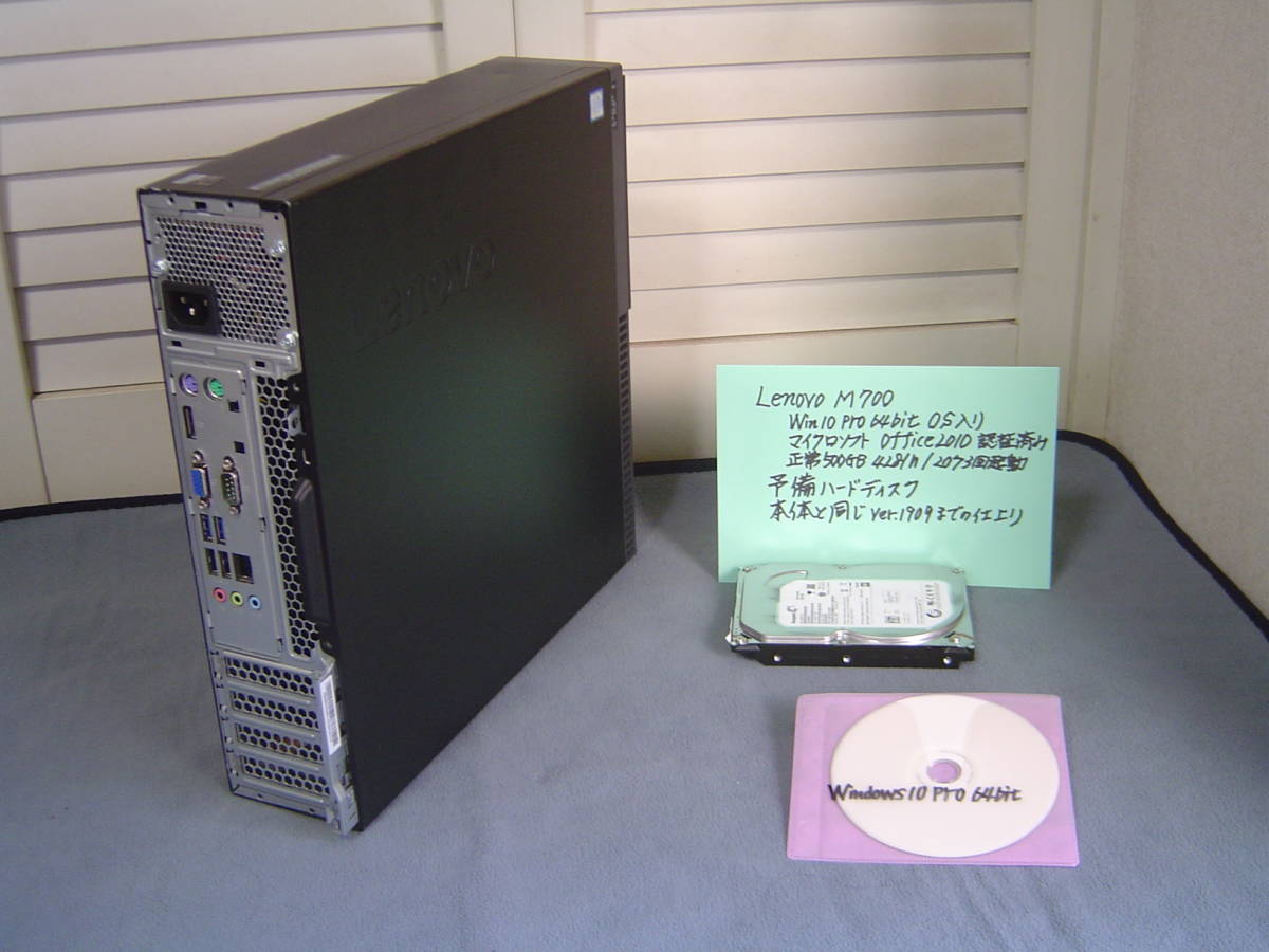 ★第6世代●新品同様51時間&●Office2010認証●LenovoM700★Corei5 6400 2.7Ghz/★4GBx1 ★空x1/Win10 Ver1909 正規認証&500GB予備HDD