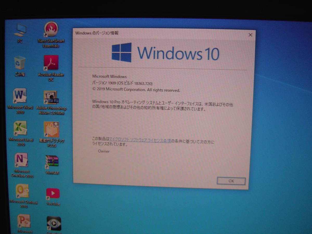 ・Windows 10正規品認証後現在Ver.1909までアップデート完了。