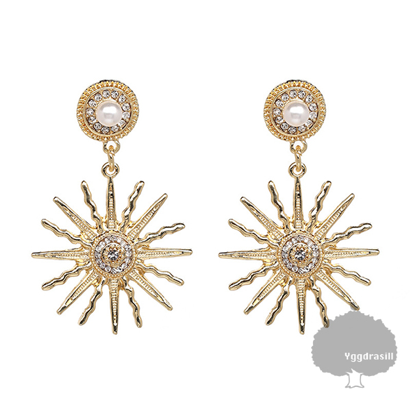 商品名:YGG★太陽モチーフ SUN ピアス ストレートポスト ゴールド ラインストーン 大きめ ペア 両耳