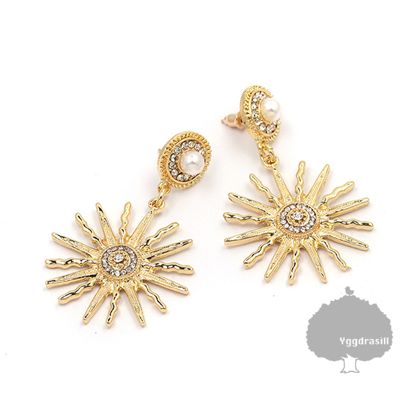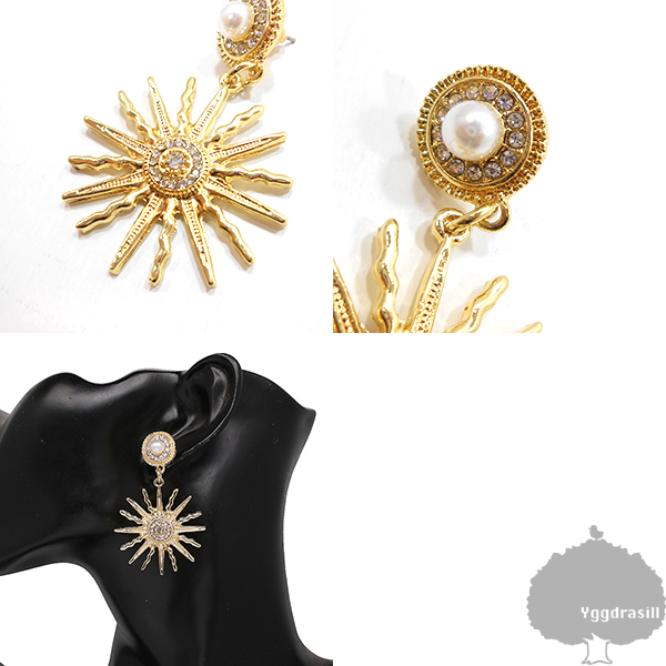 YGG★新品 太陽モチーフ SUN ピアス ストレートポスト ゴールド ラインストーン 大きめ ペア 両耳 1ペア レディース