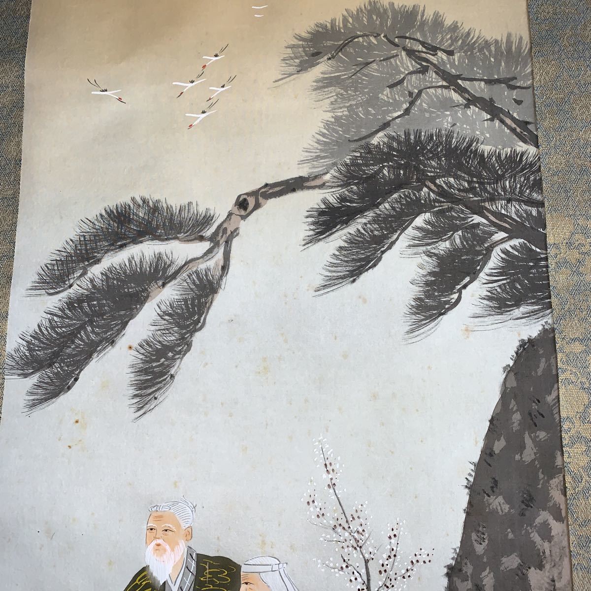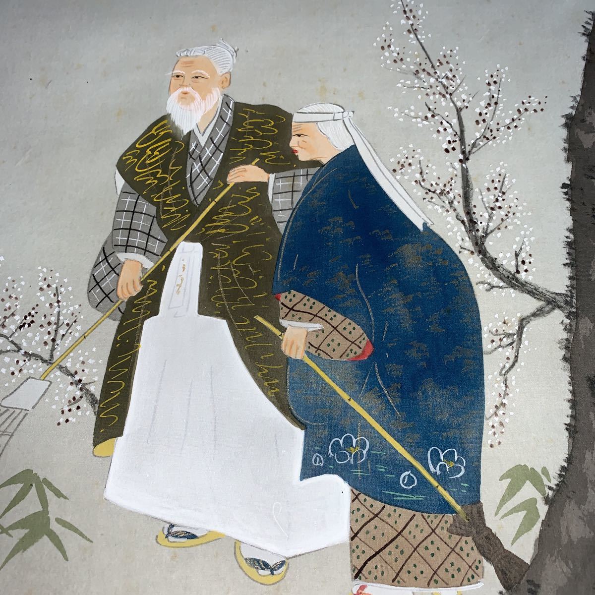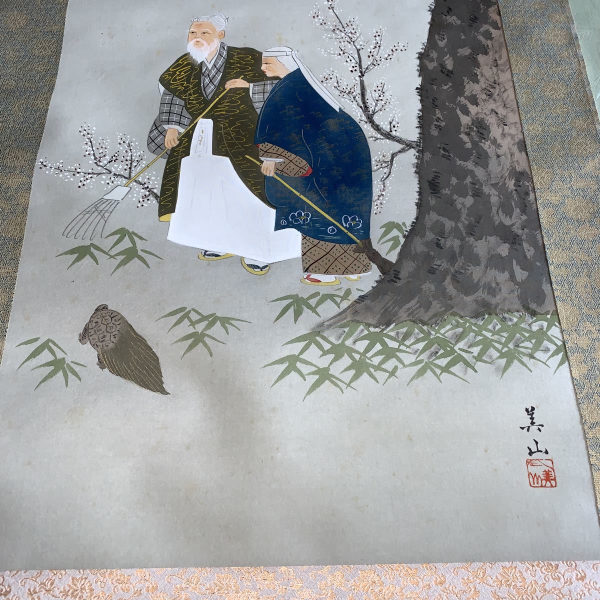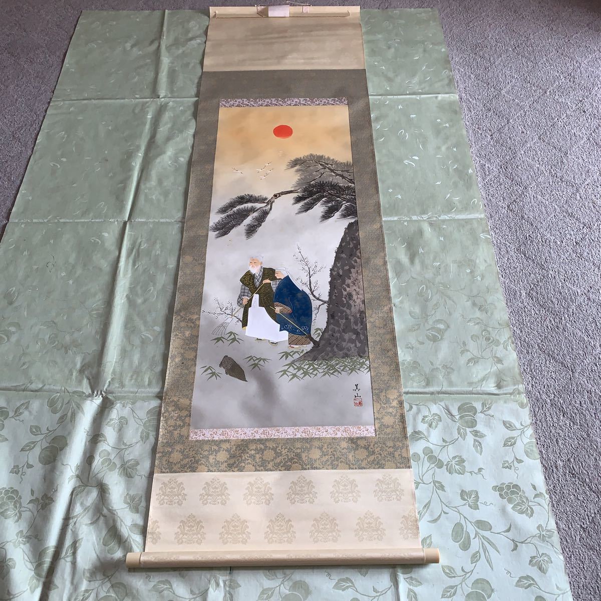 ■掛軸 高砂 美山 松竹梅 鶴亀 老夫婦 桐箱入り■