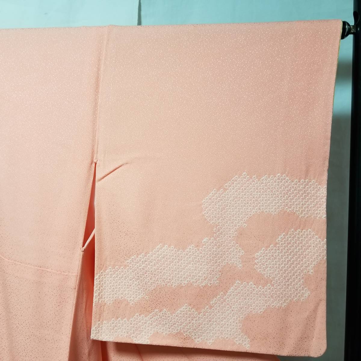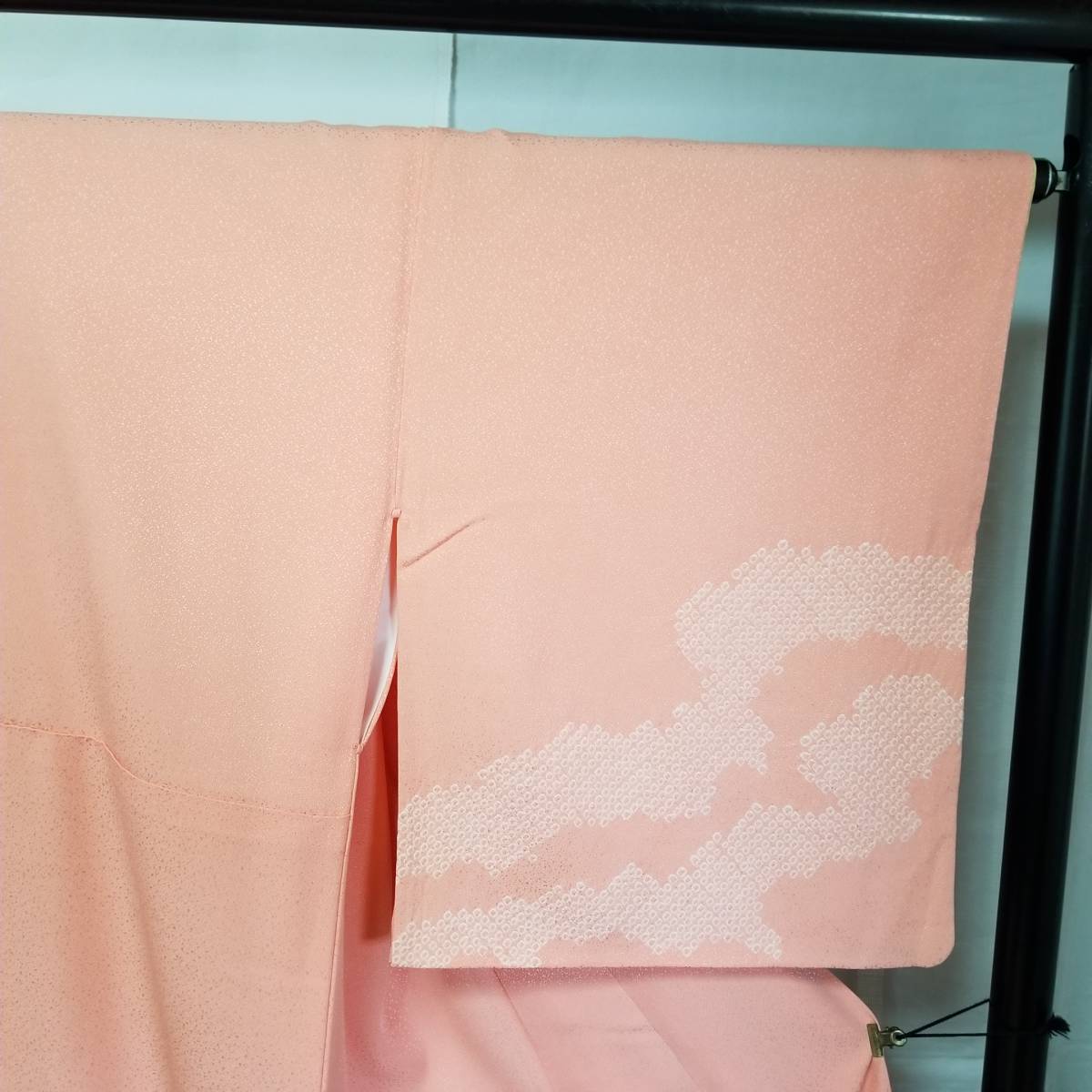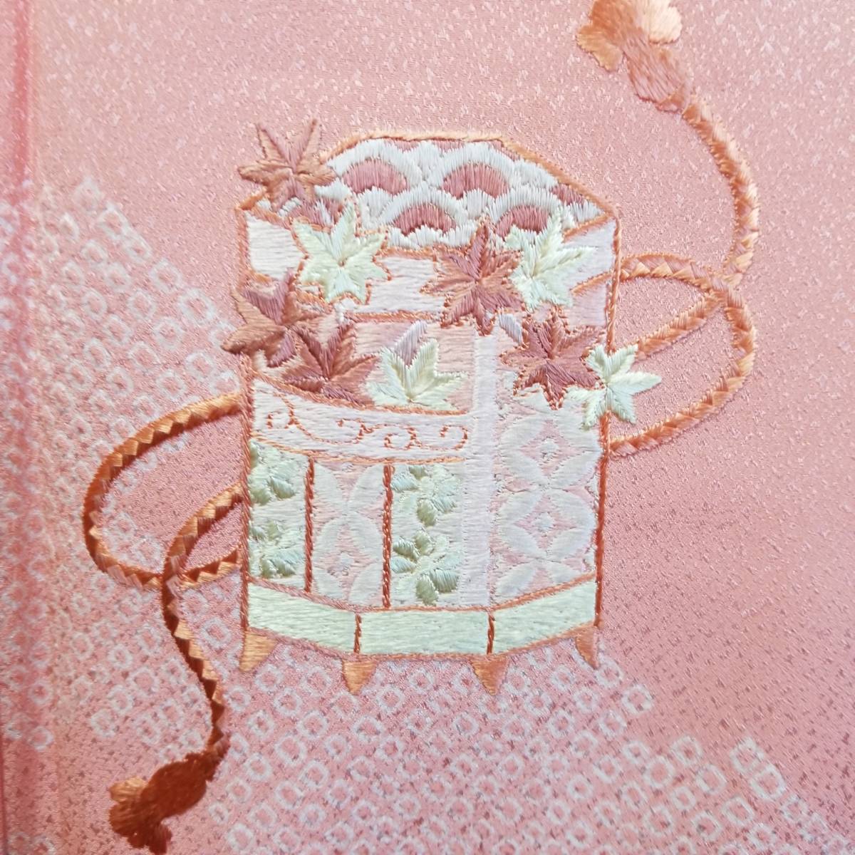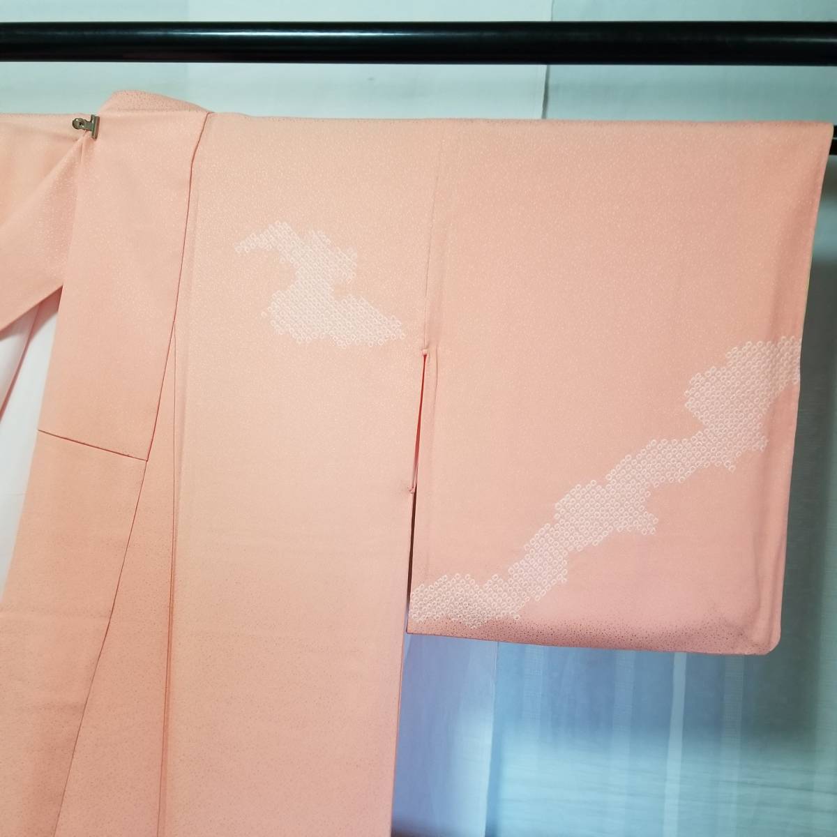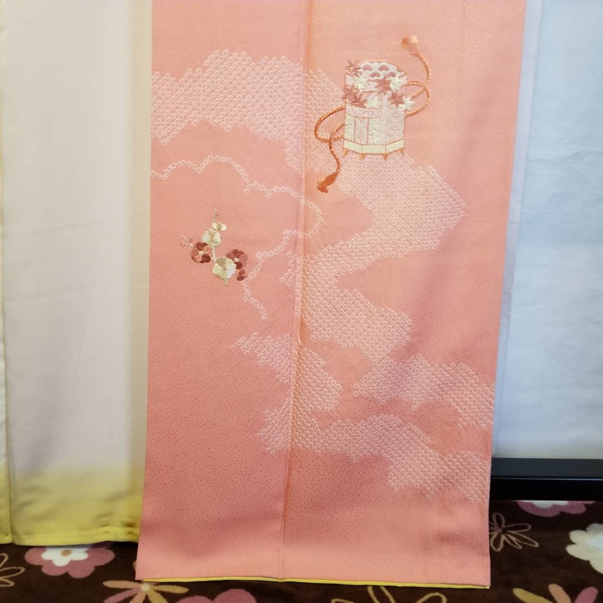 *手縫い仕立て品 *中古品 *未使用品 *検品済 *美品 {生地} ☆正絹 丹後 紋意匠縮緬{重目地}--砂をまき散らしたような小地紋 ☆着物重さ 約 900g {地色} ☆サ-モンピンク色に近いお色{やわらかい黄みの赤色}---着物の上部が光の具合で少し薄く写ってます--画像*8は明るく写ってます {模様} ☆極細.多色糸での微細手刺繍の貝桶と梅の花 ☆手絞り加工の流水文様--絞りの膨らみもございます {胴裏地} ☆ポリエステル100% 羽二重地{純白色}**美品 {八掛地} ☆正絹 精華縮緬地{タンポポ色*鮮やかな黄色*暈し染}**美品 ◎消費税は.お預かりしておりません◎ {寸法} 身丈 {肩から裾まで} 約165cm 裄丈 約66.5cm {袖付け縫い代 袖側 約1cm 身側 約2.5cm} 袖丈 約49.5cm 袖幅 約34.5cm 前幅 約23cm 後幅 約30.5cm *広衿{スナップ 2箇所付き} *袖付けには表地と共生地の人形止め付き (発送方法) ●大阪から ゆうぱっく発送 80サイズ{補償あり}**おてがる配送 ◎t6227jp 桐輪 「呉服の桐正」でも色々と出品しております** {注意事項} (注意事項 必ずお読みください!) ★基本的に土、日、祝日、ゴールデンウィーク、お盆、年末年始はお休みさせて頂いておりますので、ご連絡が遅れる場合もございますので、ご了承ください。 ★どうぞ自己紹介欄も、是非御覧になって下さいませ。 ●落札後にヤフーから届くメールに、メッセージを記載しておりますので、 そちらも必ずご覧下さいませ。 ●当方、ストア出品ではなく、一日中パソコンに向かっておらず、ご連絡は夜になる事が多いです。その点御理解の上、ご入札下さい。 ●お急ぎの場合など、到着希望の日にちが特に近い場合、ご要望にお答えできかねる場合もございます。もちろん、出来る限り、早急に対応はさせて頂きますが、 その点は、何卒ご了承下さいませ。 入札前に、発送が間に合うかご質問頂けるとありがたいです ★★基本的に返品、クレームはお受け致しておりませんが、万が一、商品に不都合(大幅な寸法間違い 記載以外の着用不可能な位の、大きなシミ、傷みなどの見落とし)などがございました場合、まず、取引ナビにてご連絡下さいませ。 迅速に対応させて頂きます。 ただし ●商品がお客様の元に到着後、1週間以上経過したもの。 ●お客様側で加工など、手を加えた物。 ●お色目が、思っていたものと違っていた、または、思っていた感じと違っていた。 (画像はできるだけ実物に近い色で写るように努力していますが、素人の撮影ですので、どうしてもPCによって多少違ってくる事があります。出来るだけ、分かりやすいように説明は入れさせて頂きます。分かりにくい場合、ご質問下さい。) 以上につきましては、対応出来ませんので、ご理解下さい。 ★複数商品の落札予定のある場合、ご連絡頂きましたら、1週間程でしたら、お取り置させて頂きます。 お気軽に、お申し出下さいませ。 ★送料は、1個で発送が無理な場合は、こちらよりご連絡させて頂きます。 | |||