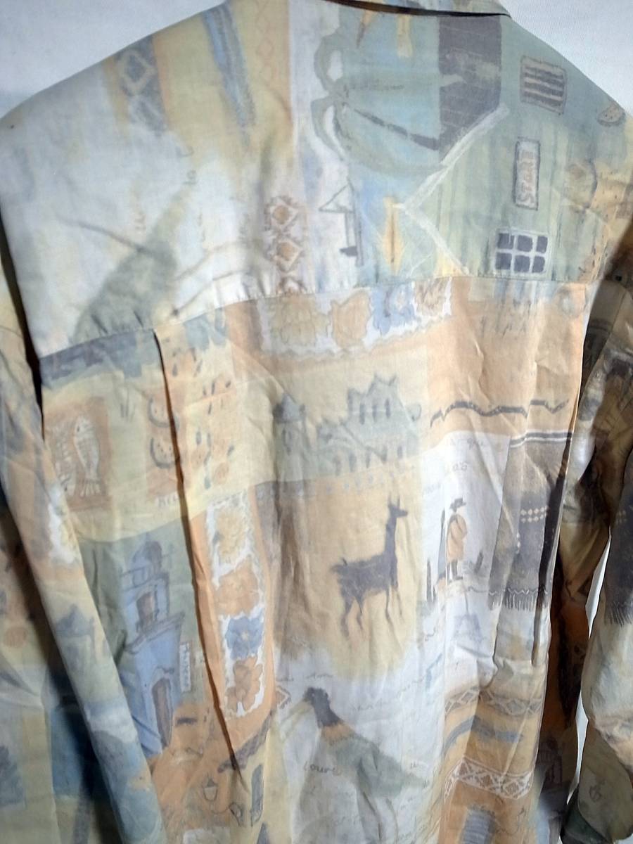 着画がある場合のモデルは177×62位の男性です。 こちらはアーティスティックなアートデザインが魅力的な1点物のused clothingの総柄シャツになります。サイズ表記はMです。 used clothingならではの雰囲気、カラーリング、シルエット共にとっても素敵な一着です。個性を大事にするオシャレ好きさんにお勧めです。 女性がオーバーサイズで着られても絶対に可愛いと思いますので彼女との兼用やプレゼントとしても喜ばれるかと思います。 状態はused clothingですが特別なダメージや汚れは見受けられません。普段からコーディネートに古着も合わす方なら問題無いかと思います。 あくまでも取扱い商品は古着となりますので神経質な方はご遠慮下さいませ。 サイズ表記 M 実寸平置き(背中心着丈 79cm位、脇下身幅 56cm位、肩幅 52cm位、袖丈 55㎝位) ※着画モデルは177×62位の男性です。 特殊なアイテムの素人採寸ですので多少の誤差はご了承の上ご参加下さい。 |