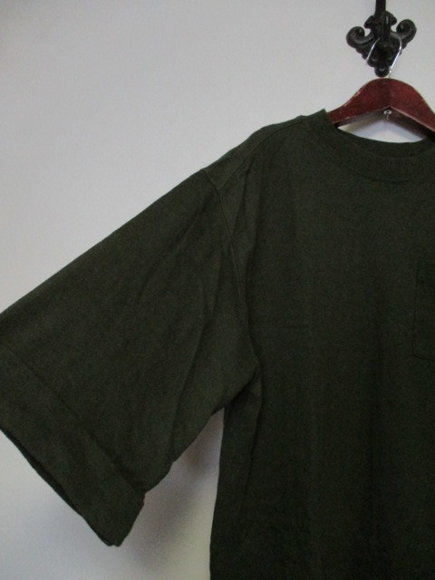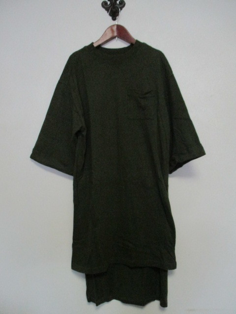 商品紹介 | カーキのゆったりした5分袖チュニック・ワンピースです。 基本、Tシャツを長くしたような形です。 前が短く、後ろが長いデザインです。 両サイドに前31cm、後ろ45cm程スリットが入っています。 カットソーとしては少し厚手でしっかりとした生地感です。 《素材》 綿100% |