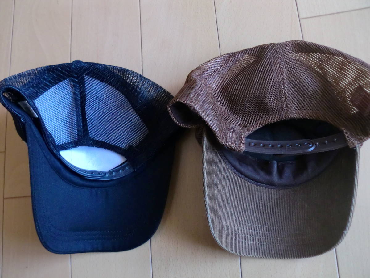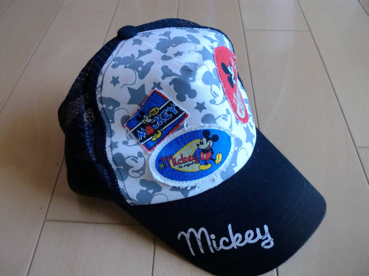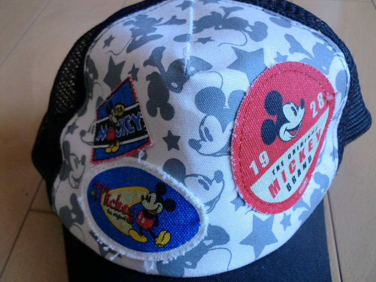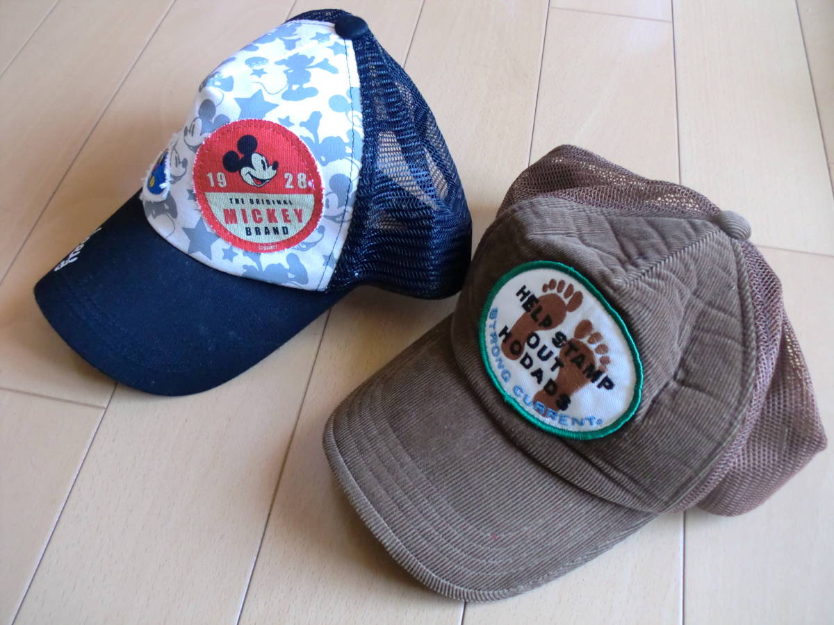 HANG TEN風の足跡と、ミッキーマウスのワッペンがアクセントのキャップ(野球帽型)2個セットです。