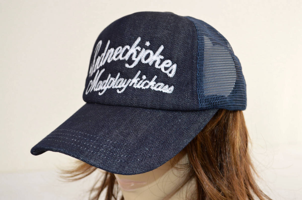 大きいサイズ チェーン刺しゅう入 メッシュキャプ 30370 ベーシック NVY 頭周り61cm Redneckjokes Madpiaykickass