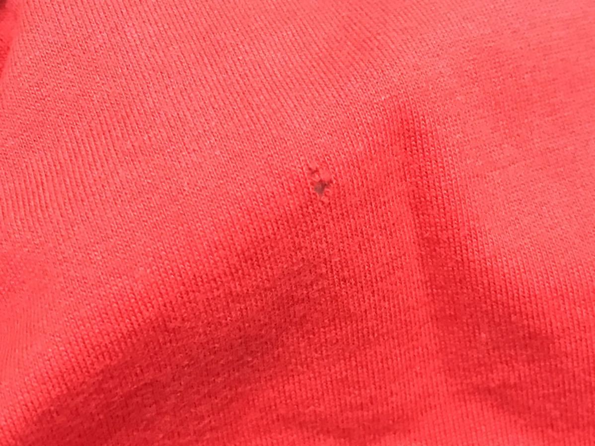 背中側の肩の方に穴あきあり。Tシャツ自体は綺麗な方だと思いますが中古になりますのでNCNRでお願いします