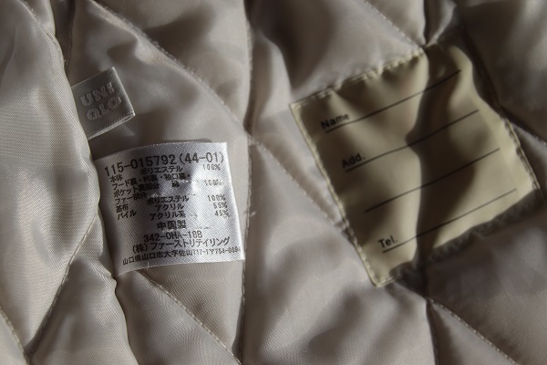 美品ユニクロ110軽量中綿コードジャンパーアウター フード取り外し可能