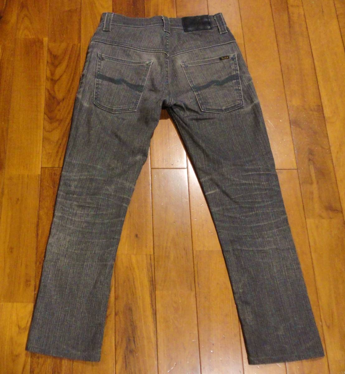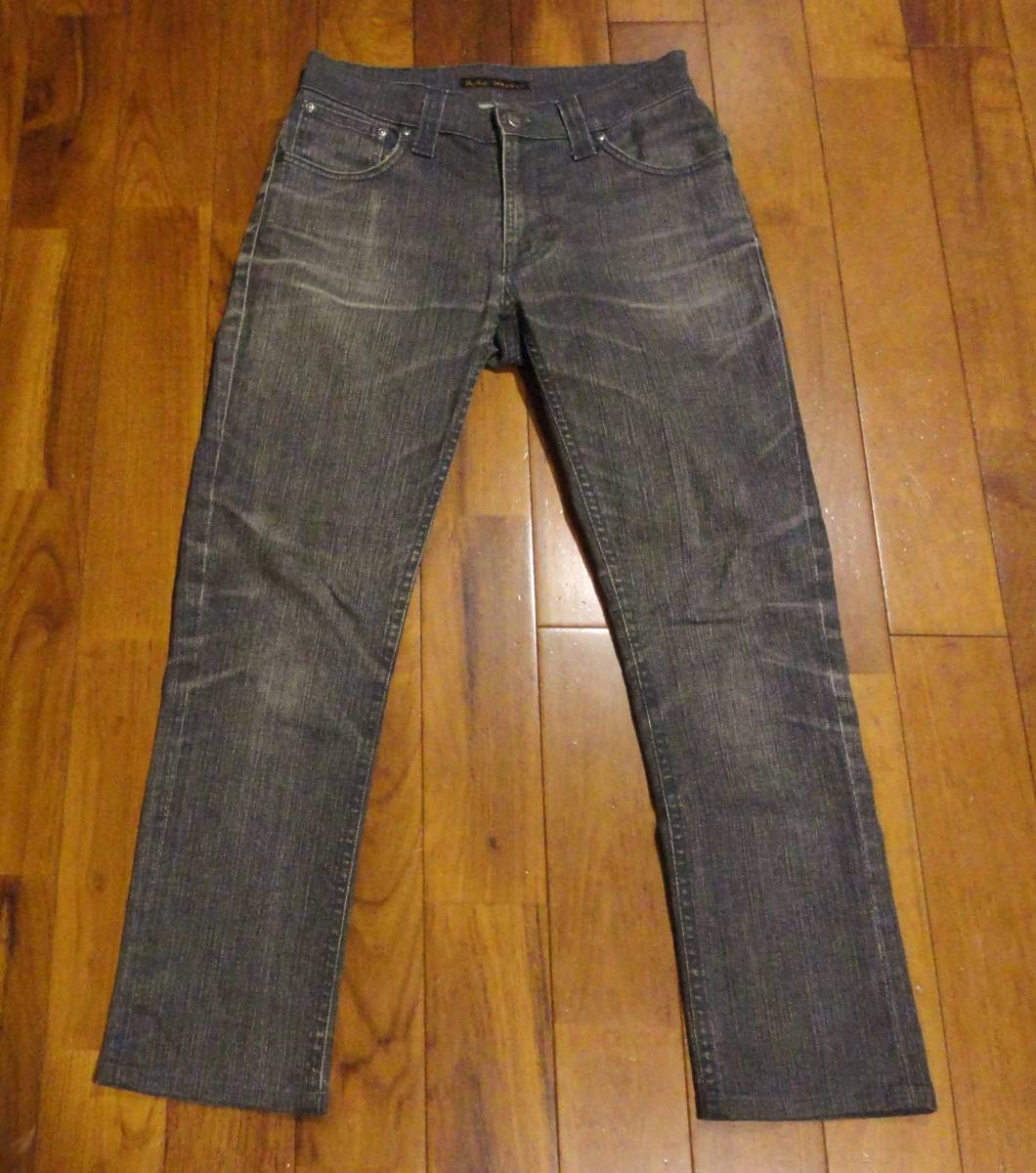 ヌーディージーンズのアンクル丈ストレッチデニム(ジーンズ)、NJ1799 THIN FINN DRY GREY COATEDです。色はグレーです。USEDですが状態は良いです(10段階中8程度)。生地はストレッチ入りで綿98%、エラスタン2%です。牛革パッチ、ジッパーフライです。正規品です((株)ヒーローインターナショナル、イタリア製)。サイズはW28でウエストは重ねずに平置きで約73cm、ヒップ約95cm、股上約23cm、股下約66cm、股下15cmのふともも部分約44cm、裾まわり約32cm、重量約420gです。発送はゆうパケットポストになります。