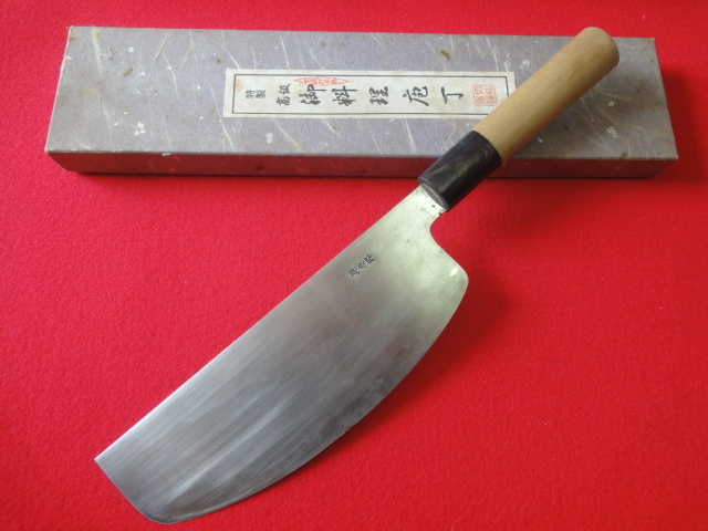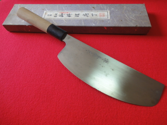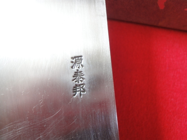 【源泰邦】寿司包丁 ※巻き寿司切り 刃渡23.1㎝ 全長39.5㎝ 峰厚4.7㎜ 両刃 ※箱付 ※中古品 ※全国一律送料1100円