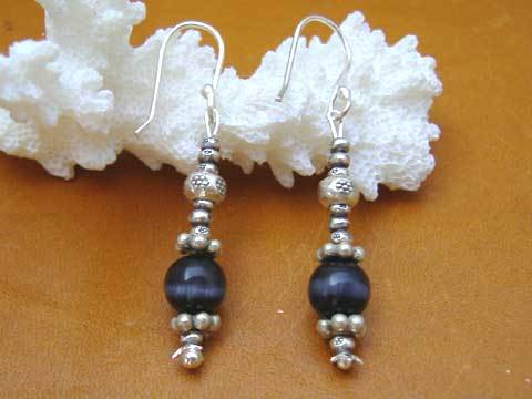 ◆カレン族シルバー&キャッツアイのロングピアス44◆黒<検索>虎目石・Tiger's Eye・タイガーアイ・猫目石・オニキス・トルマリン・ヘマタイト・しまめのう |
