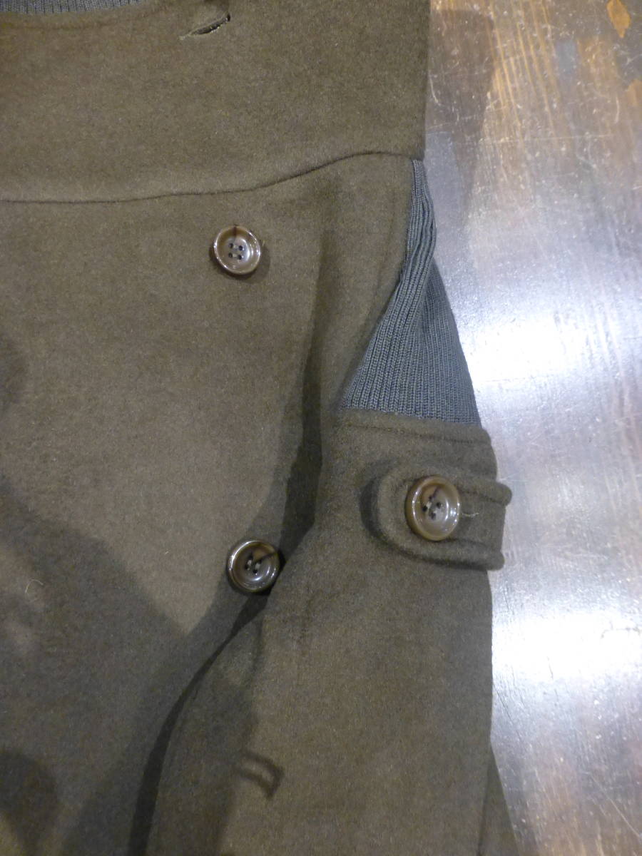 肩部分はニットリブで切り替してあり従来のPコートにありがちな窮屈感を解消し、動きやすさとシルエットの美しさを両立しています。