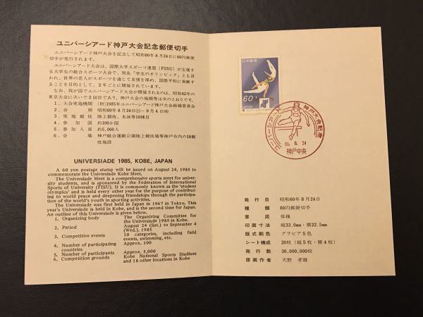 | 1985年 ユニバーシアード神戸大会切手 1985.8.24.発行 |