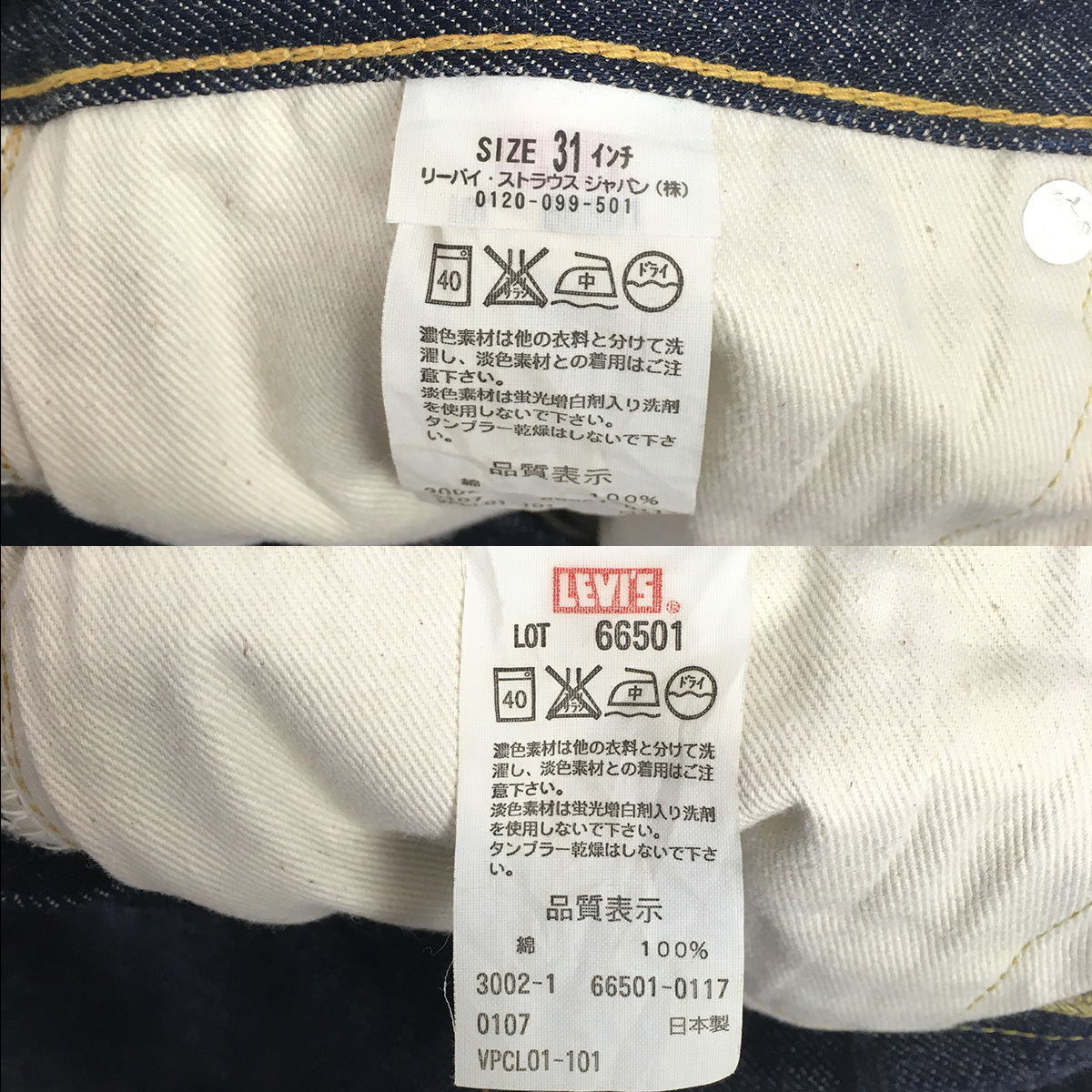 【美品】LEVI'S リーバイス VINTAGE CLOTHING LVC 501XX 501 Wネーム 66501-0117 日本製 07年 復刻 ジーンズ W31 L36 セルビッチ 濃紺