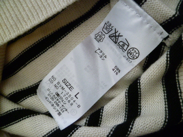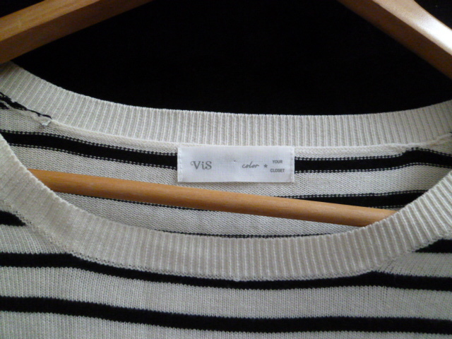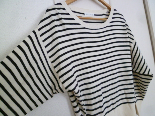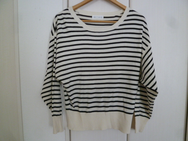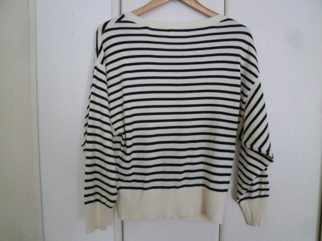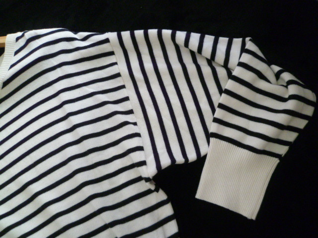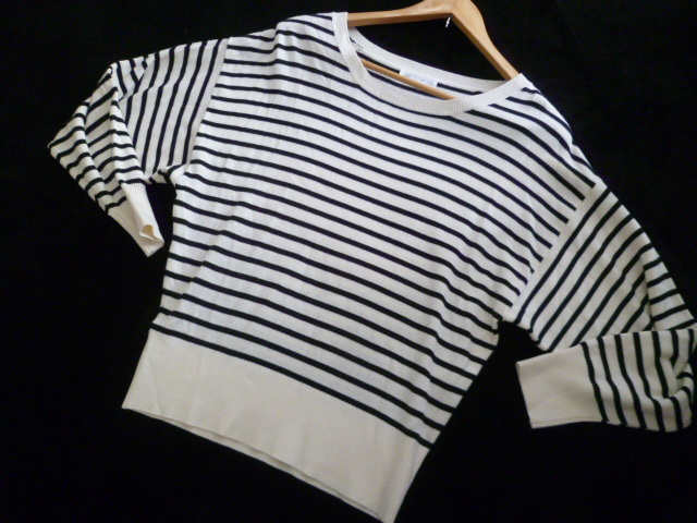 VIS/ビス○オフホワイト×黒ボーダードルマンシンプルニットL/長袖トップスジュンマリン系○1215①