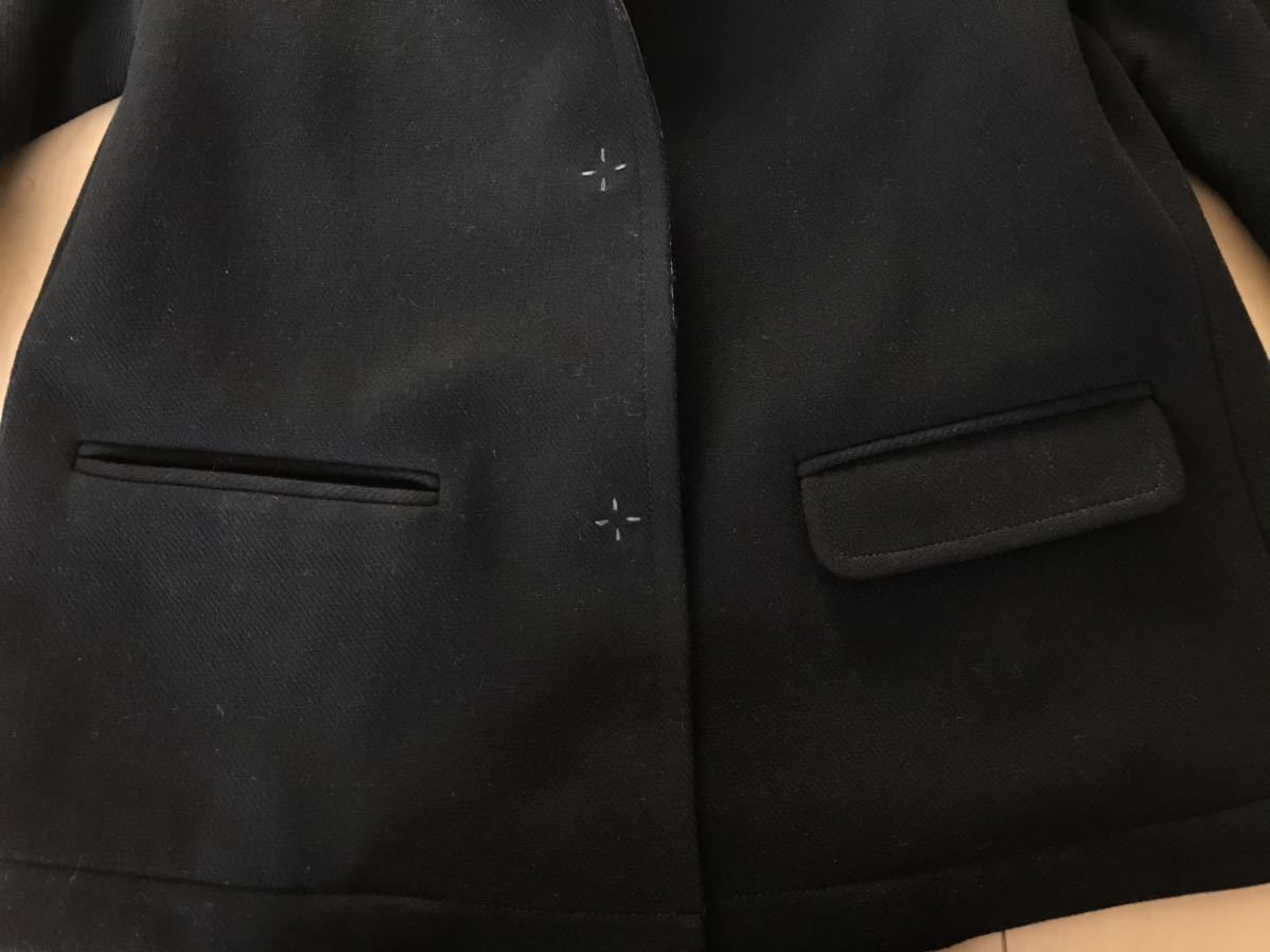 シンプルな型ですが前立てと袖口の裏地にゴブラン織り風の豪華な刺繍の裏地がとても素敵です。袖口は折り返しても折り返さなくても着用可能です。