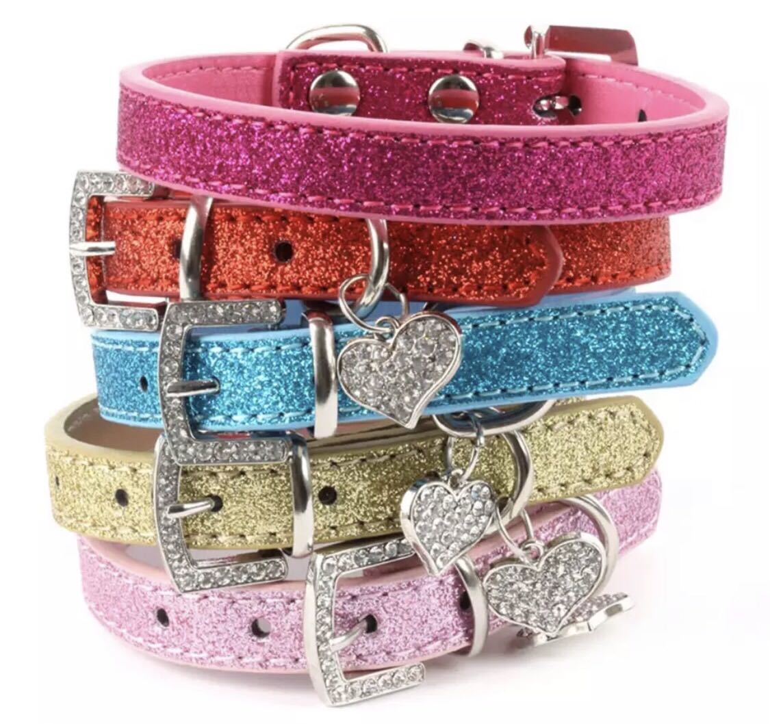 クリスタル ハート型 ラメ首輪