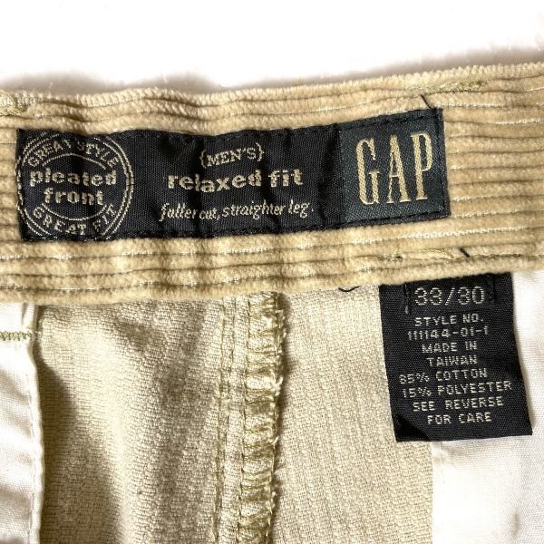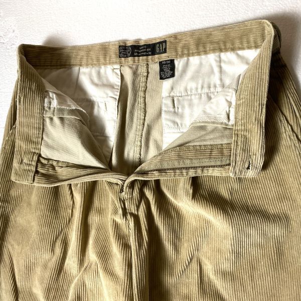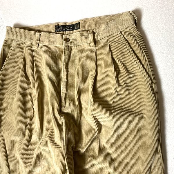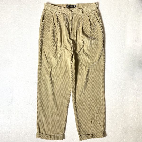 90's ギャップ GAP 2タック 太畝 コーデュロイパンツ (33/30) ベージュ系 90年代 旧タグ オールド