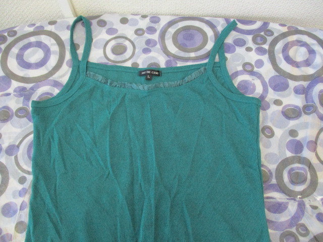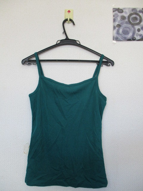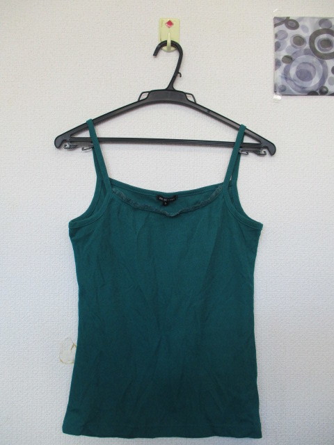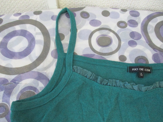 ★RIO DE CENT キャミソール 胸元にレース付き 無地 グリーン系(L)