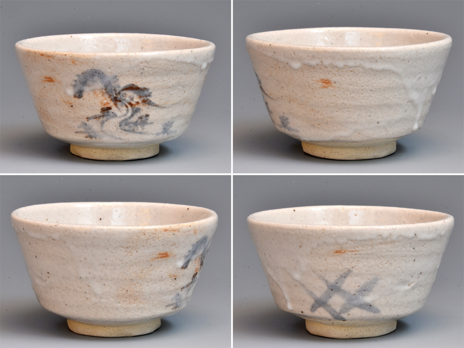 野中春清(造)志野山水文茶碗です。 志野の素地に釉薬が豪快にかけられ自然釉の景色が素晴らしく、山水文が鉄絵で描かれ、うっすら垣間見える轆轤目も味わい深く見事な一品です。 高台脇にに銘あり。 未使用品ですのでキズや欠点はなく、良い状態です。 ※撮影の際に生じた写り込みなどがございます。 ご理解の程よろしくお願い致します。 |