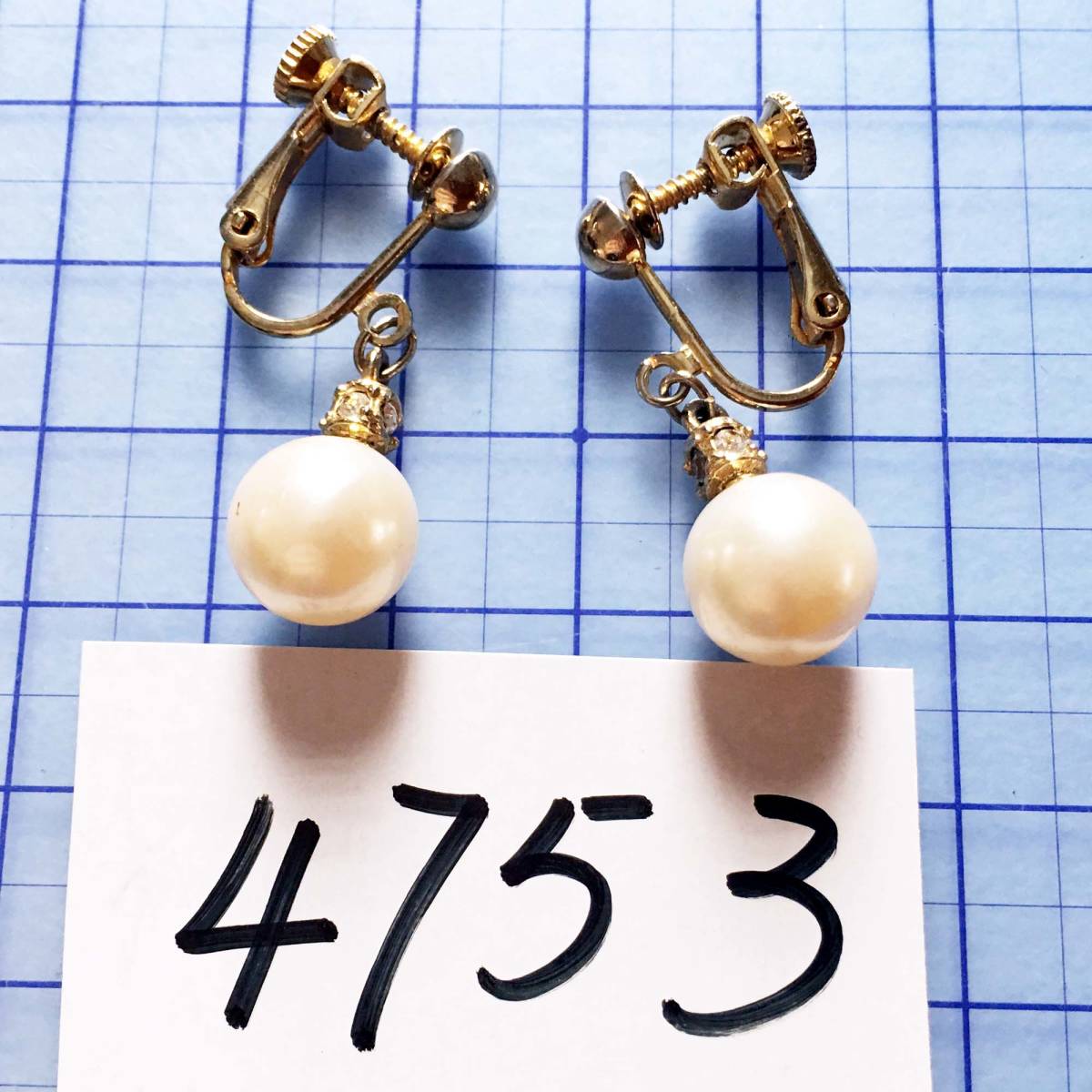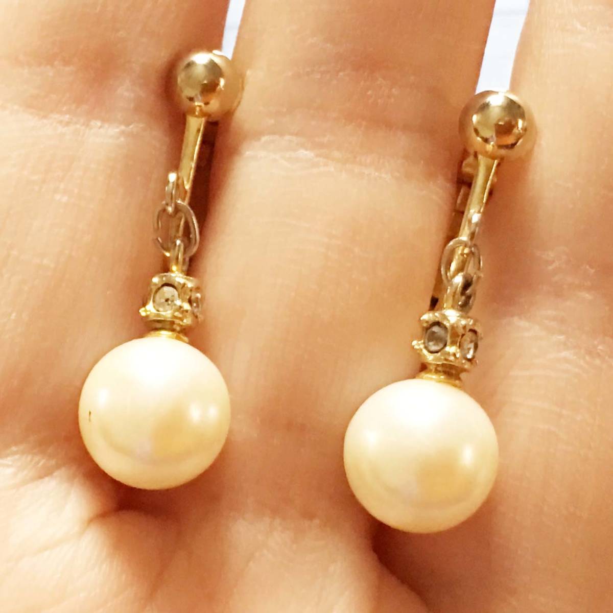 美品 フェイクパール ラインストーン ゴールド イヤリング NO.4753