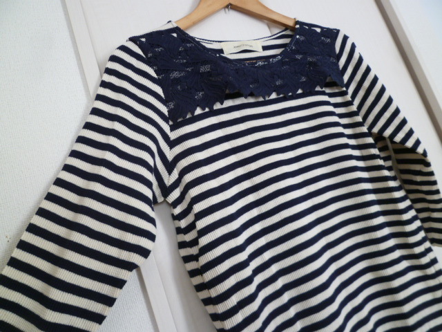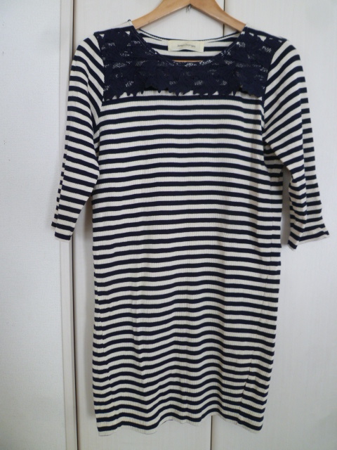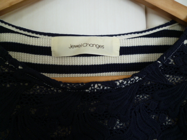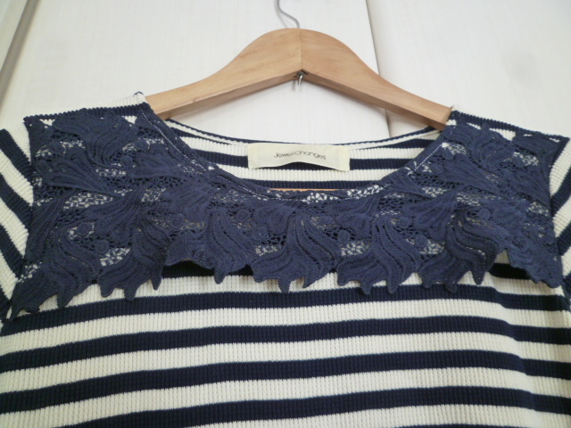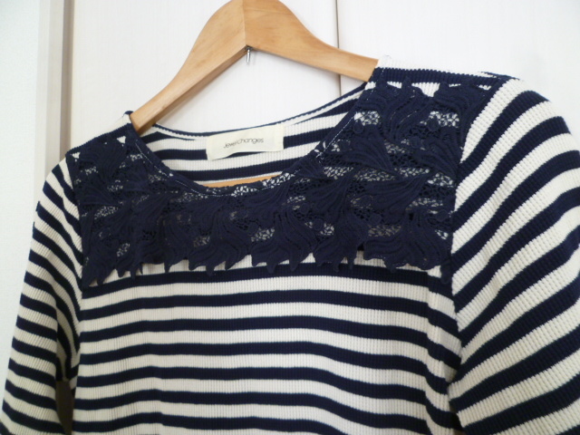 Jewel Changes/ジュエルチェンジズ○紺×オフホワイトボーダーレースモチーフワンピース/ユナイテッドアローズネイビーホワイト○OP1121