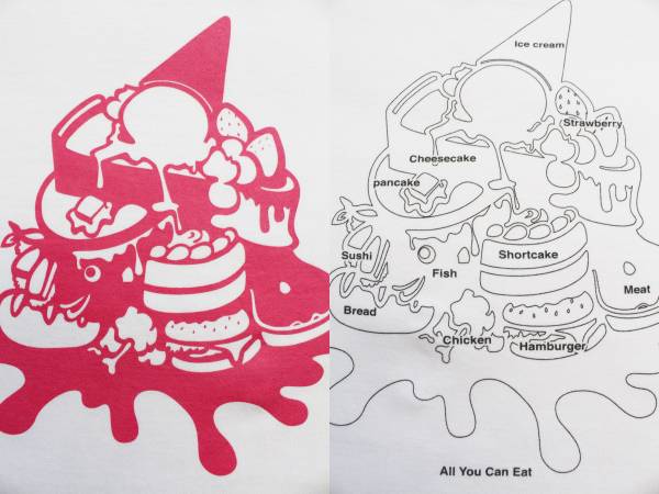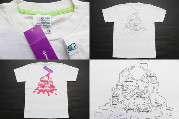 CTS06キューン レディース アイスクリーム パンケーキ いちご チーズケーキ ハンバーガー 寿司 パン ショートケーキ 初期 半袖TシャツCUNE