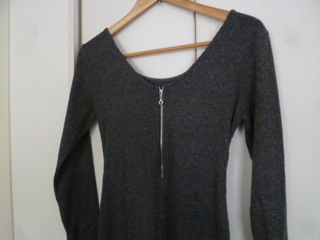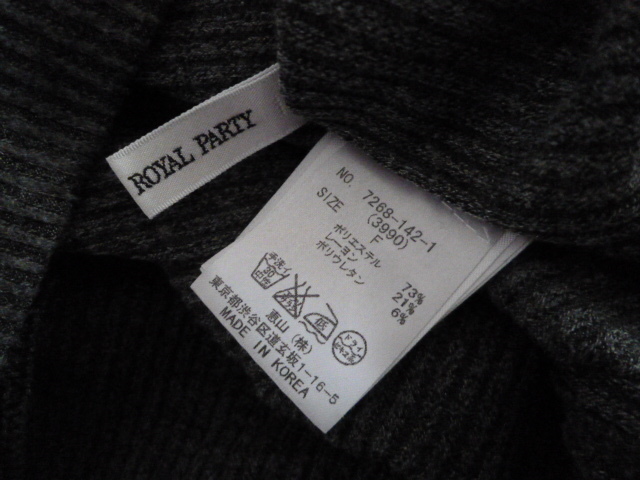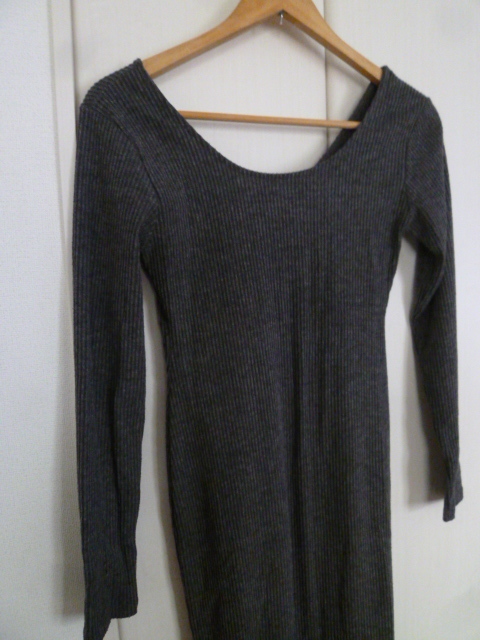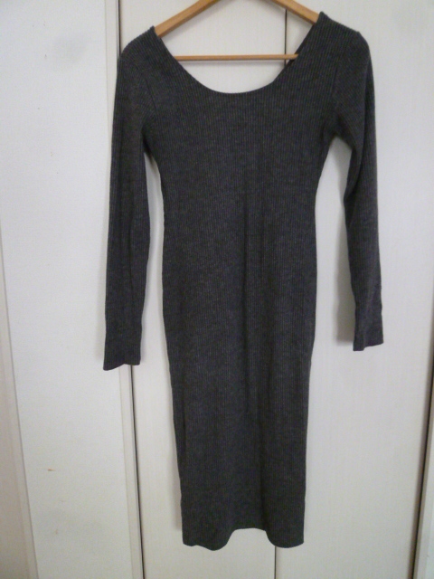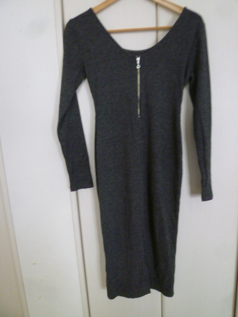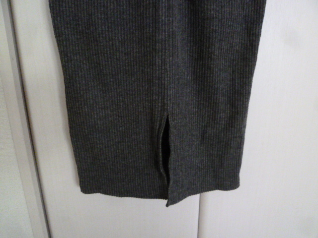 ROYAL PARTY/ローヤルパーティー○グレー縦リブ背中ジップアップスリット入りボディコンワンピースF/長袖ミモレ丈ロング○OP1119