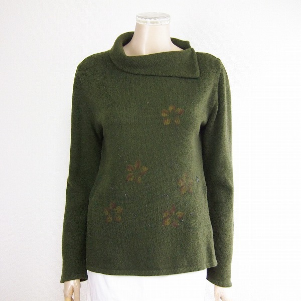 ![]() ![]() 落札後はオークション終了のお知らせメールに出品者からのメッセージが御座います。 自己紹介欄には急な休み等の記載をする場合が御座いますので一度お目通し頂きます様お願いいたします。ご一読の上オークション終了後2日以内の連絡、 落札後4日以内のご入金のお約束を守って頂ける方のご入札をお待ちしております。 小さい子供がおりますのでお急ぎのお取引を希望される方のご入札は遠慮下さいませ。 ---↓ここにブランド名記入---- ブランド名:イタリア製 八興商事株式会社 ---↓ここに特徴記入---- 特徴:全体的にゆったりとしたアンゴラ混ニットです。深いオリーブグリーン系にモダンな花柄にラメ入り刺繍が上品に煌めく。袖口、裾部のしめつけ感がないゆったりデザイン、スリット入りハイネックが気品ある上級イタリア製長袖ニットです。 ---↓ここにサイズ記入---- サイズ : Lサイズ 表示(トルソーは9号です) 実寸(平置き採寸) 肩幅43cm、身幅47cm、袖丈60cm、ウエスト45cm、着丈59cm、裾幅50cm ---↓ここに素材記入---- 素材 : 毛60% アンゴラ20% ナイロン20%