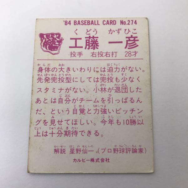 1984年 カルビー プロ野球カード 274番 阪神 工藤 84年   【管理NO:201-70】