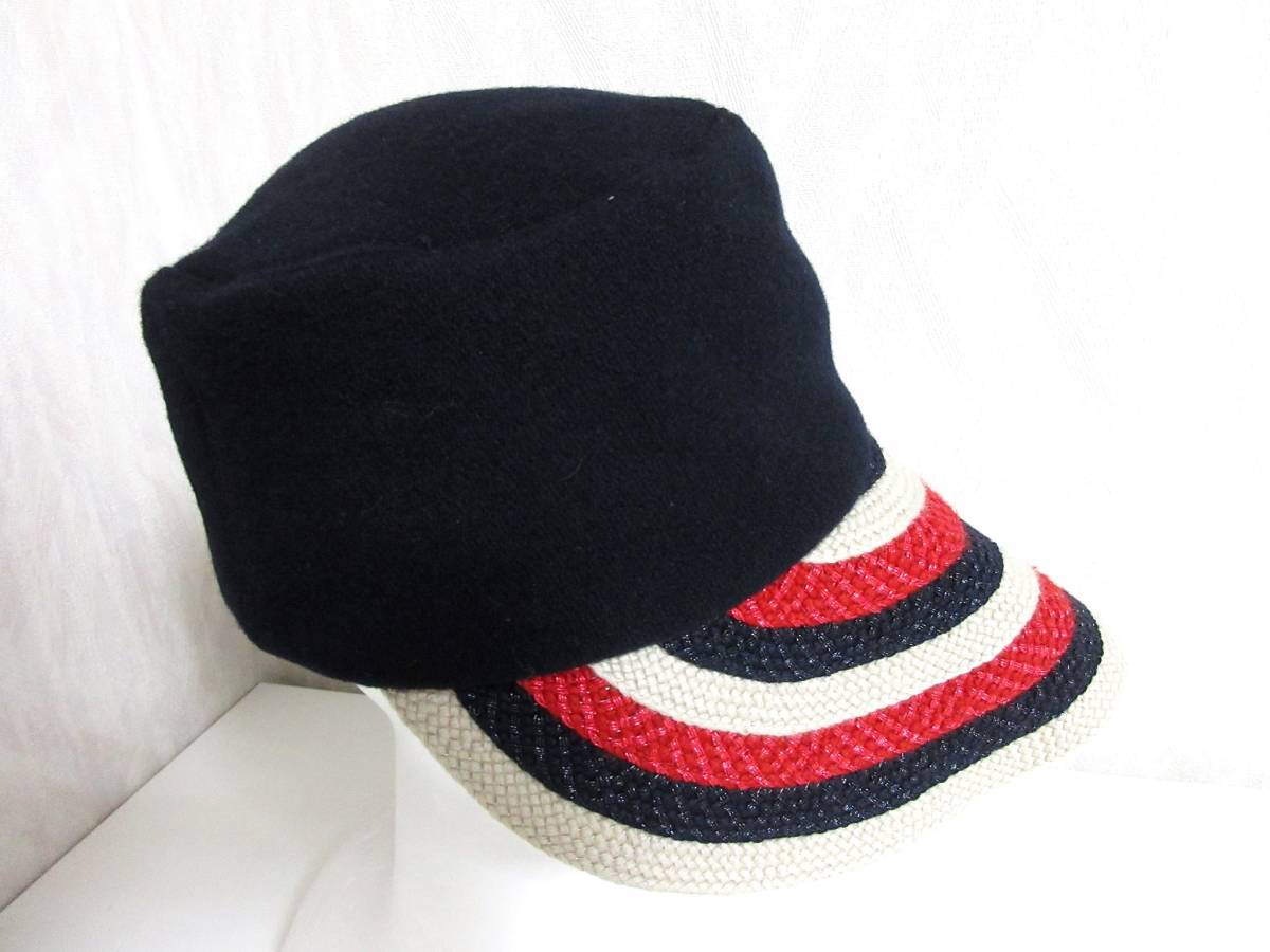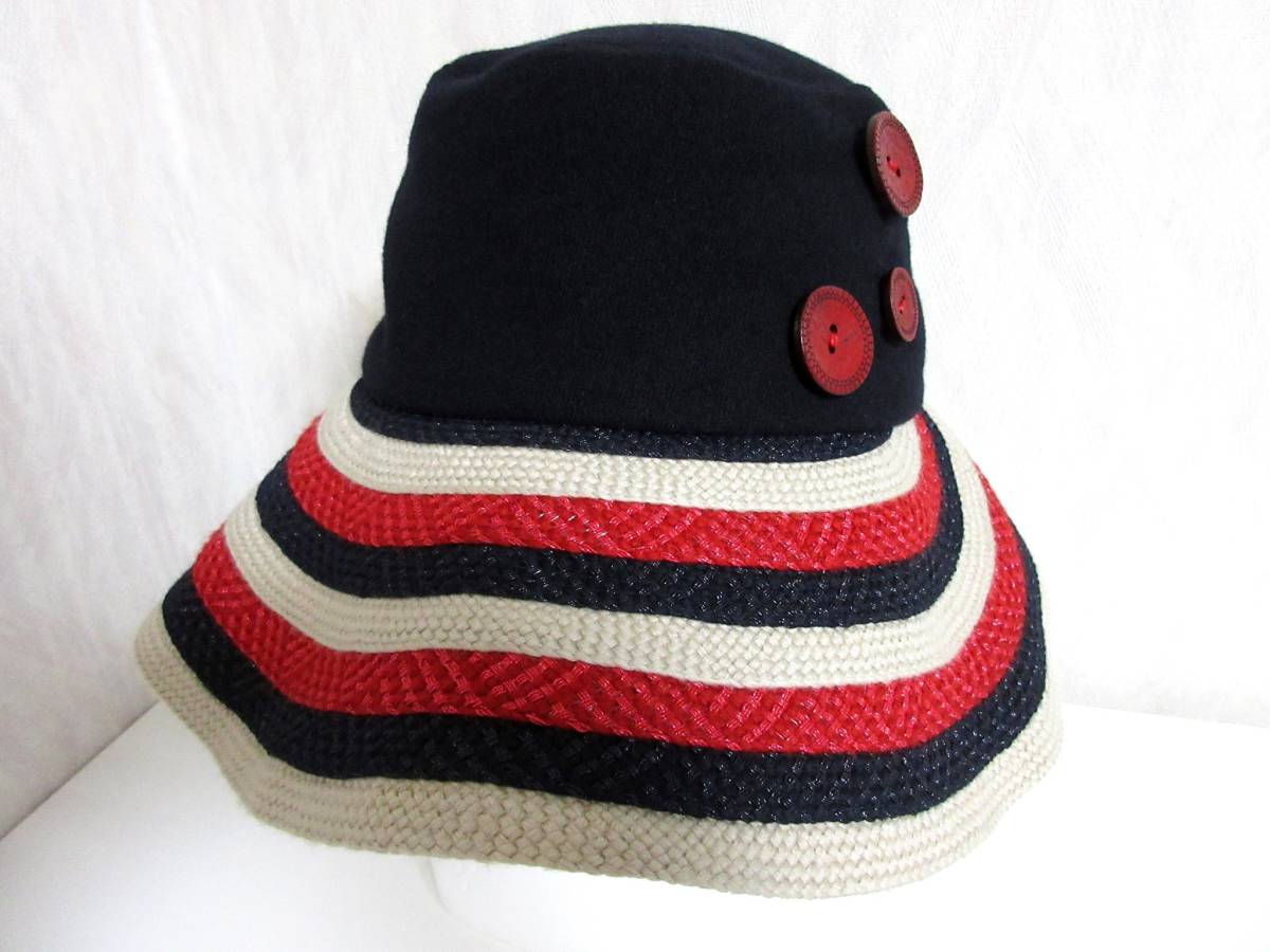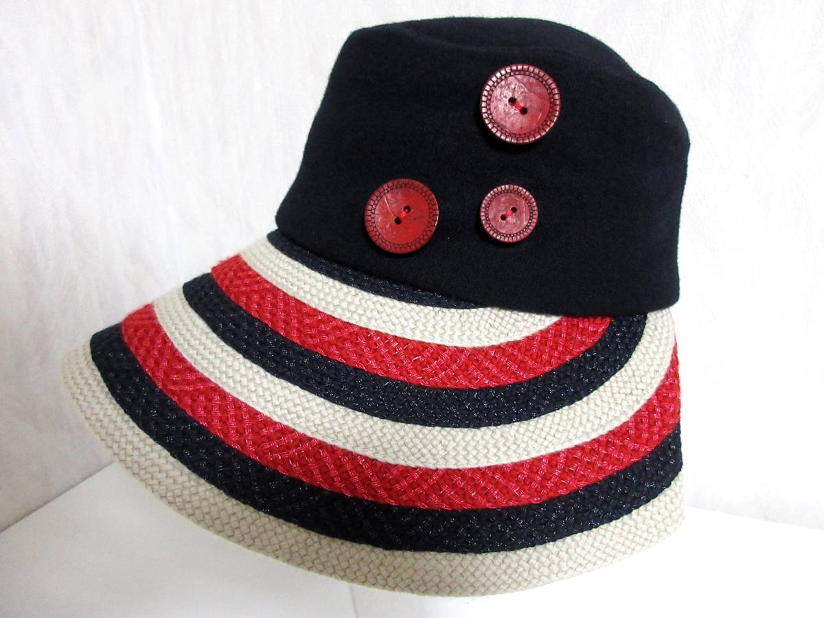 セットブルー SEPTBLEUS つば広 ハット 帽子 黒 ブラック ボタン装飾 北1225
